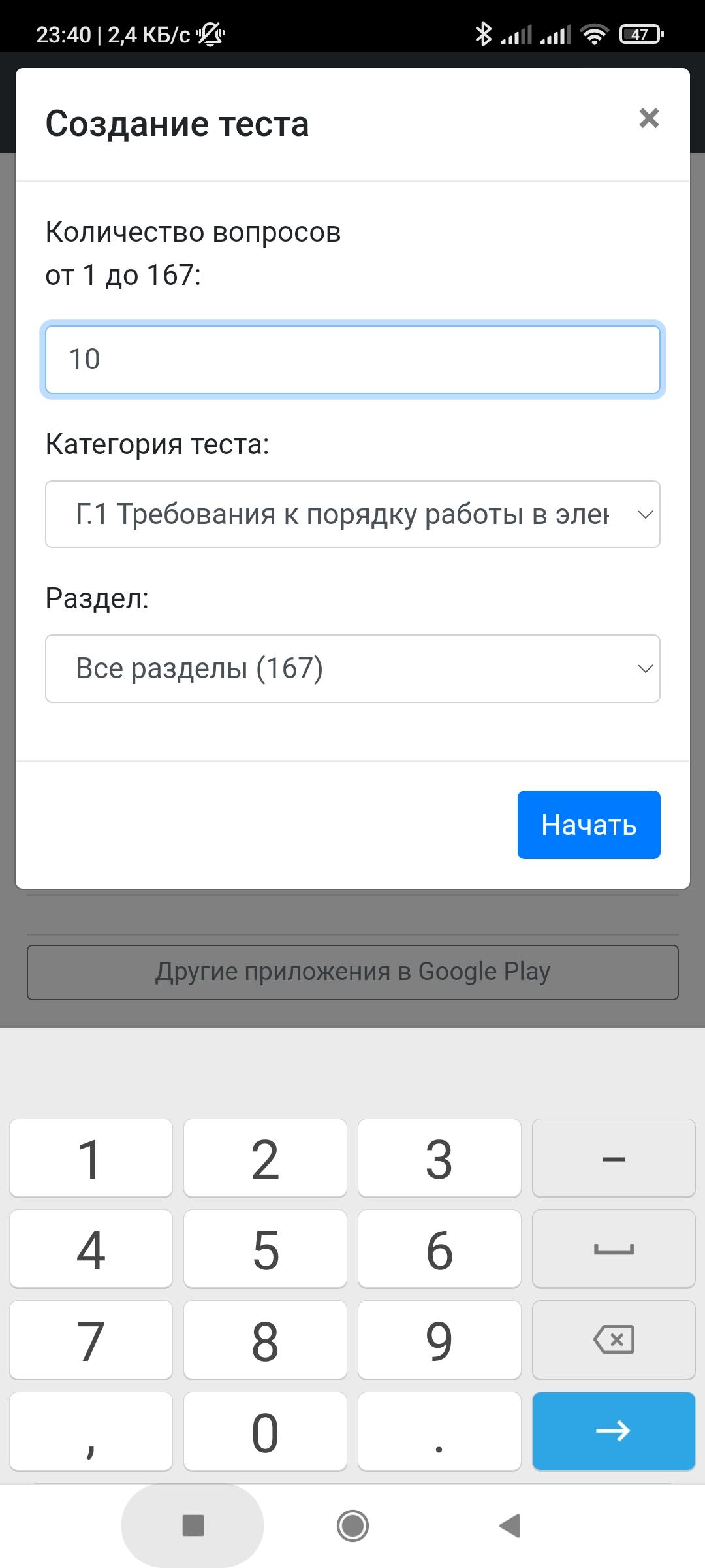 Приложение для подготовки и сдачи теста в Рос. Тех. Надзоре по темам