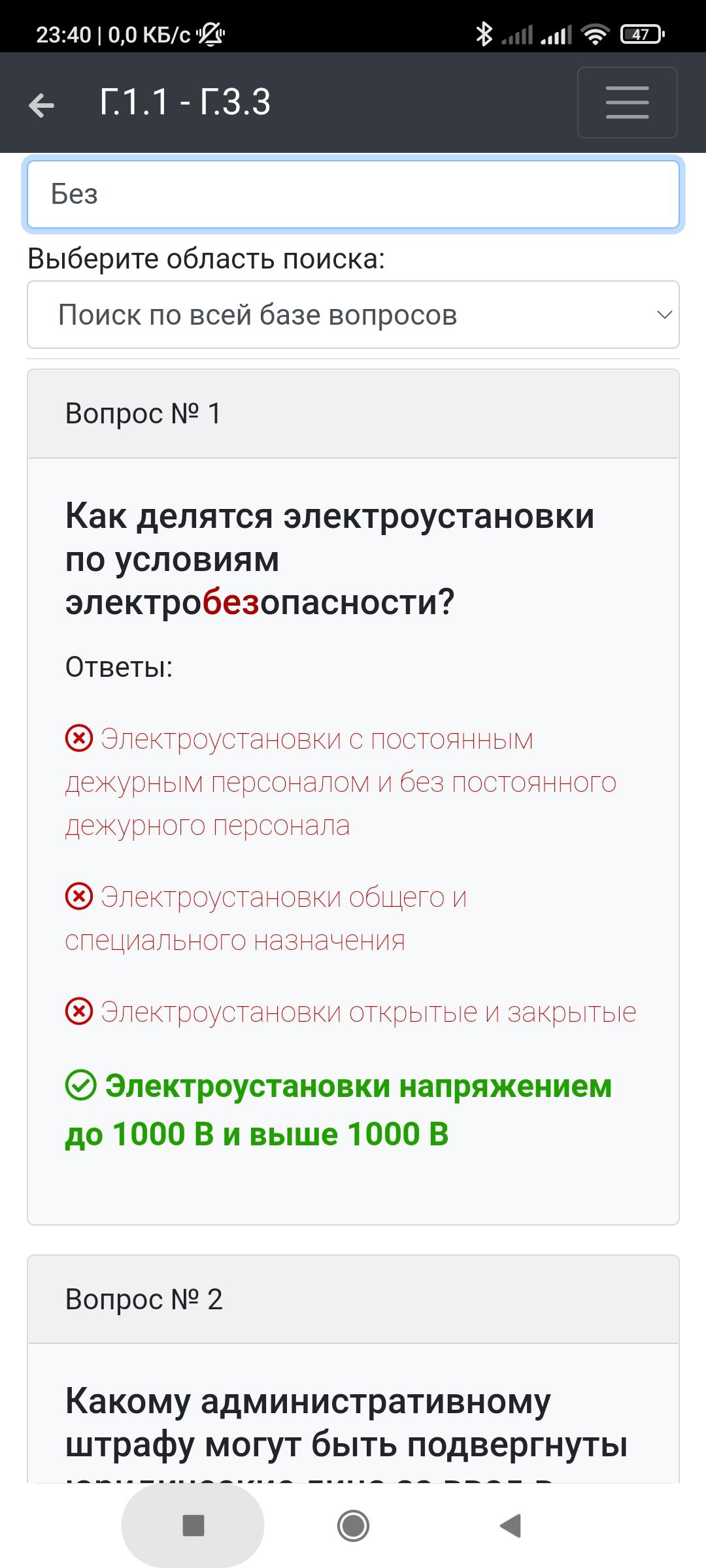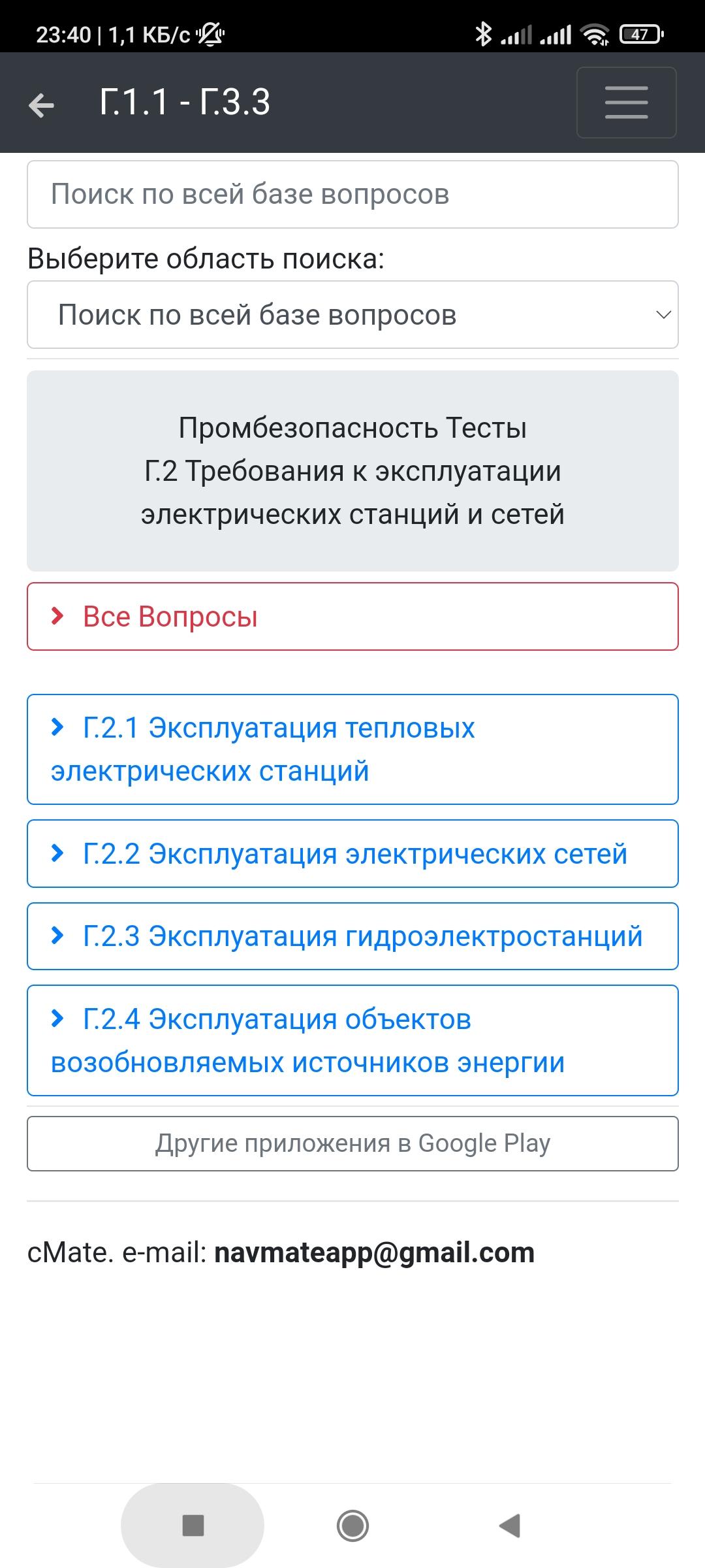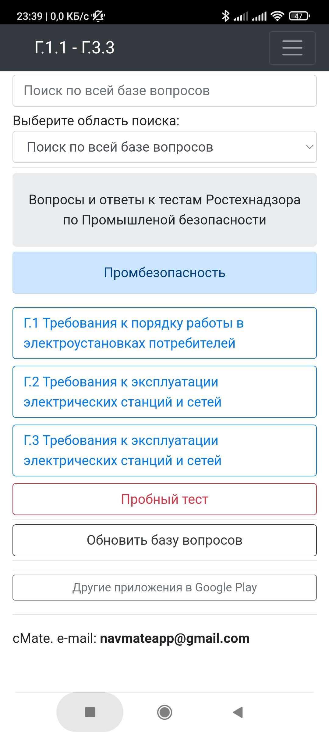 Приложение оснащено удобным поиском по всей базе вопросов или отдельной теме.