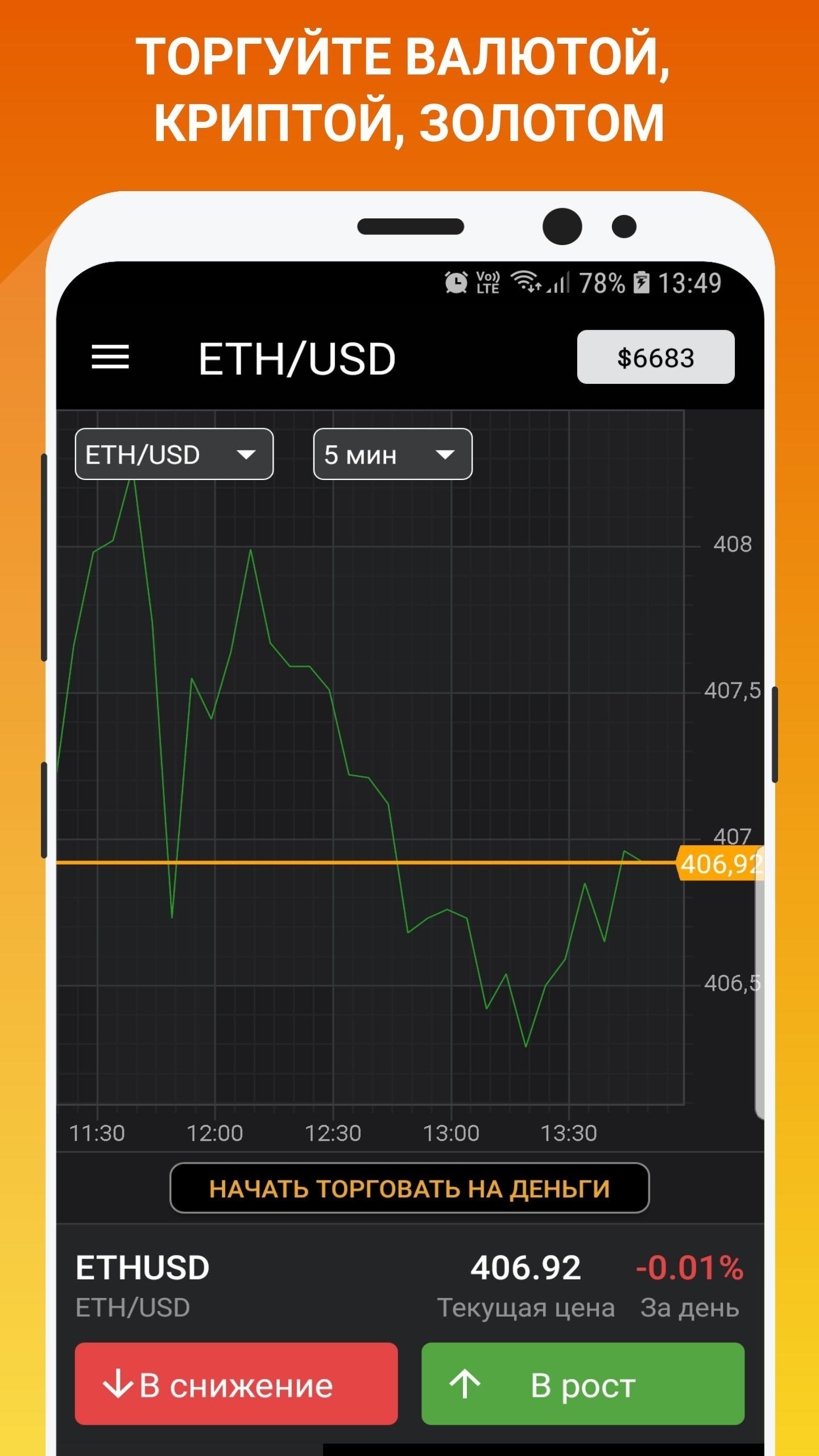 Trading simulator will be useful for those who want to learn how to earn money, but do not yet know how or not confident in their abilities. The application was created specifically so that you can easily switch from training to real trading and earning on the stock exchange. Trade on Forex in your mobile phone or tablet! Watch the latest news and prices for currency pairs - dollar-euro-yen-ruble-pound, Gold, Bitcoin, Bitcoin KESH, Etherium.