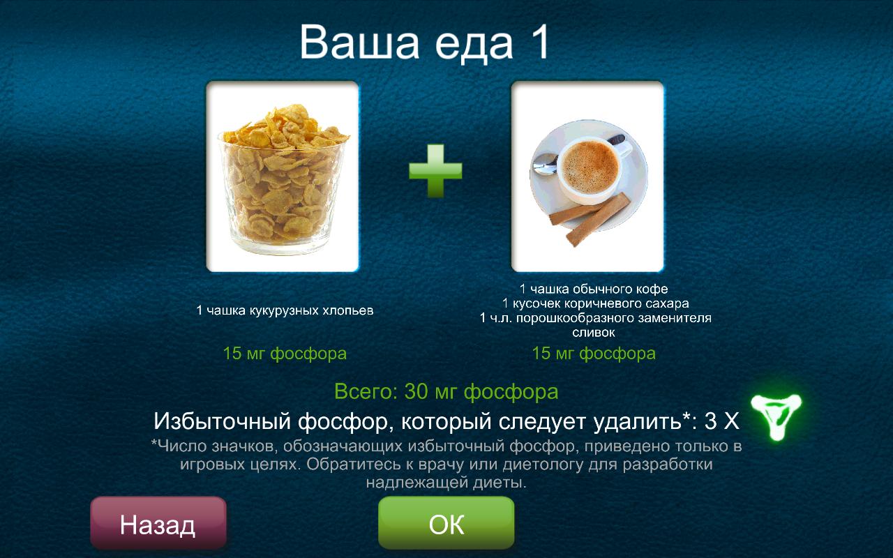 Игра включает в себя 16 уровней сложности, связанных с увеличением содержания фосфора в различных блюдах.