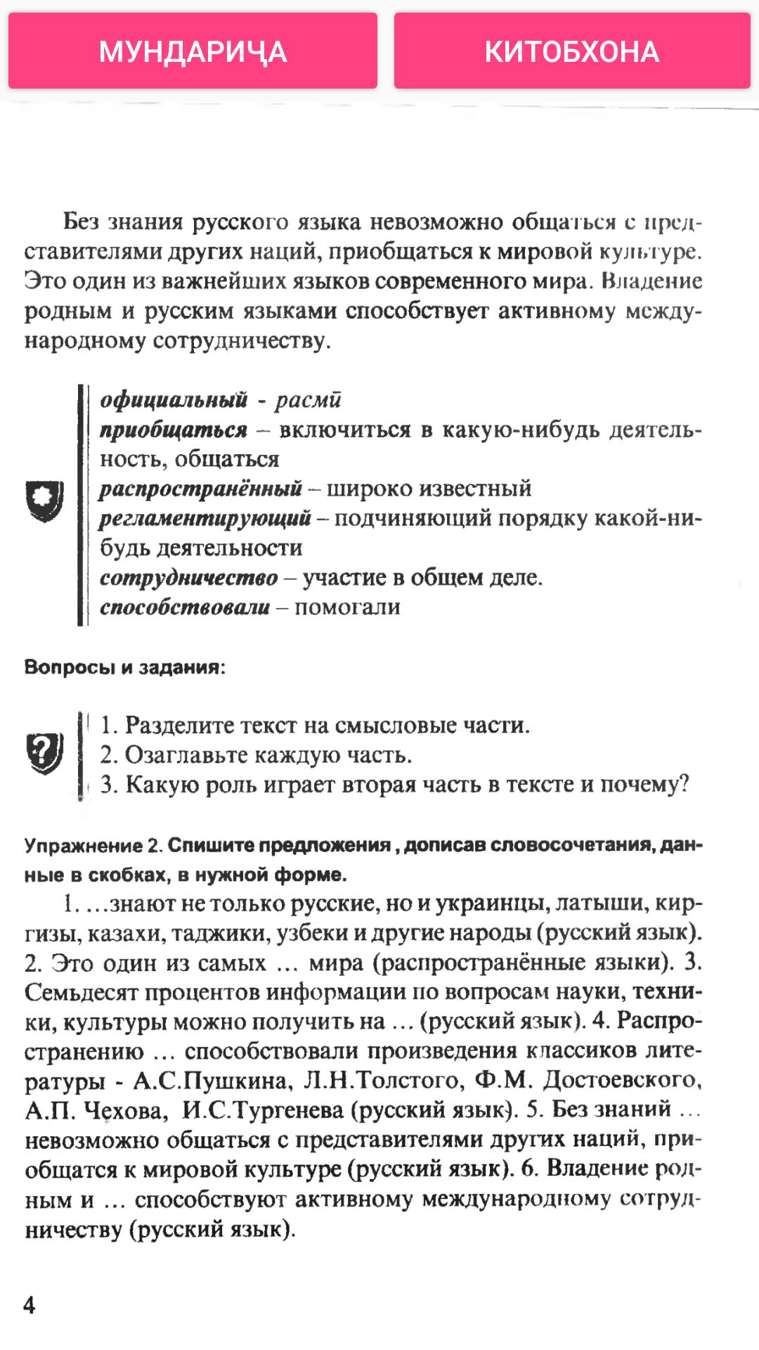 языку для учащихся 10-х классов школ с таджикским языком обучения. Учебник