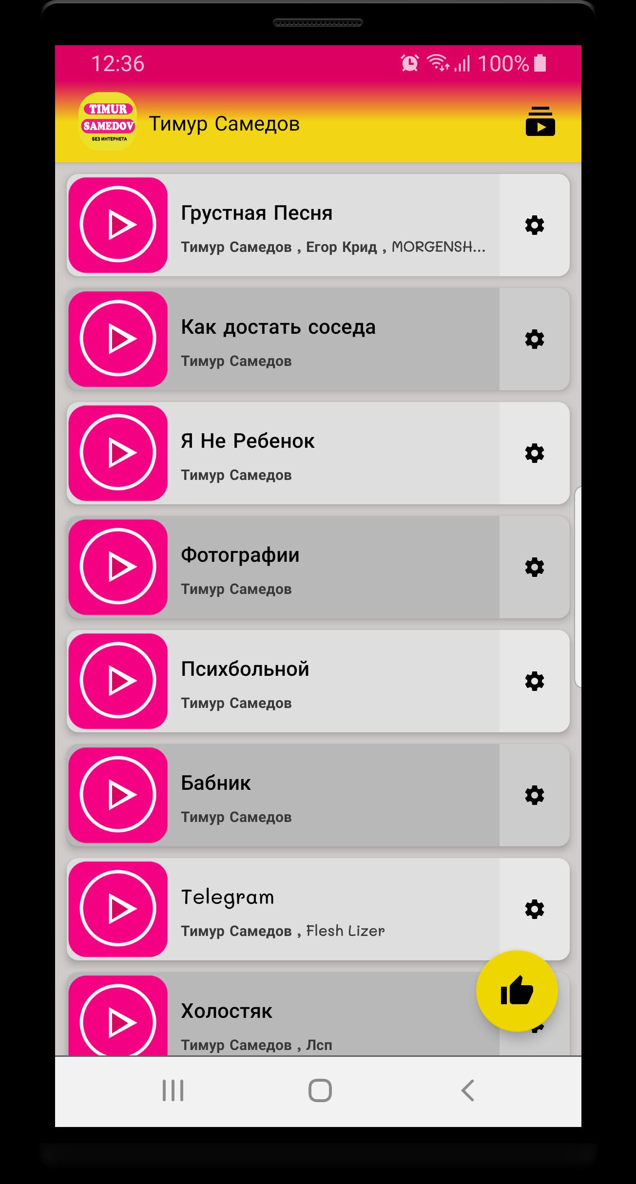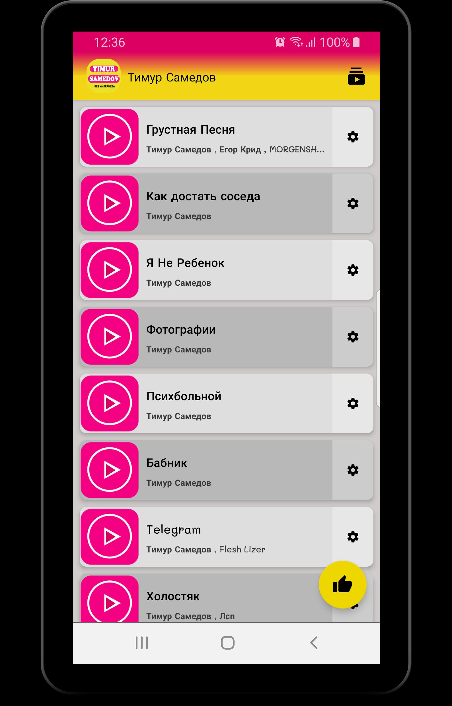 приложение "Трилл Пилл песни без интернета" содержит лучшие песни Timur Samedov.