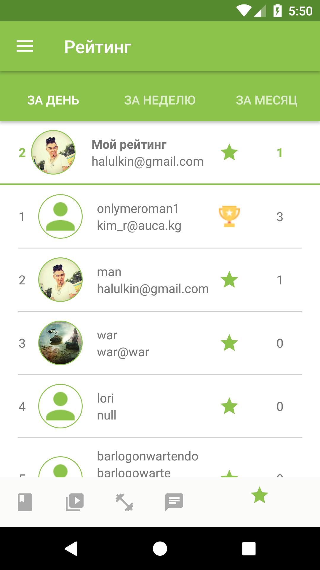 - Рейтинги пользователей, основанные на интенсивности тренировок слов.