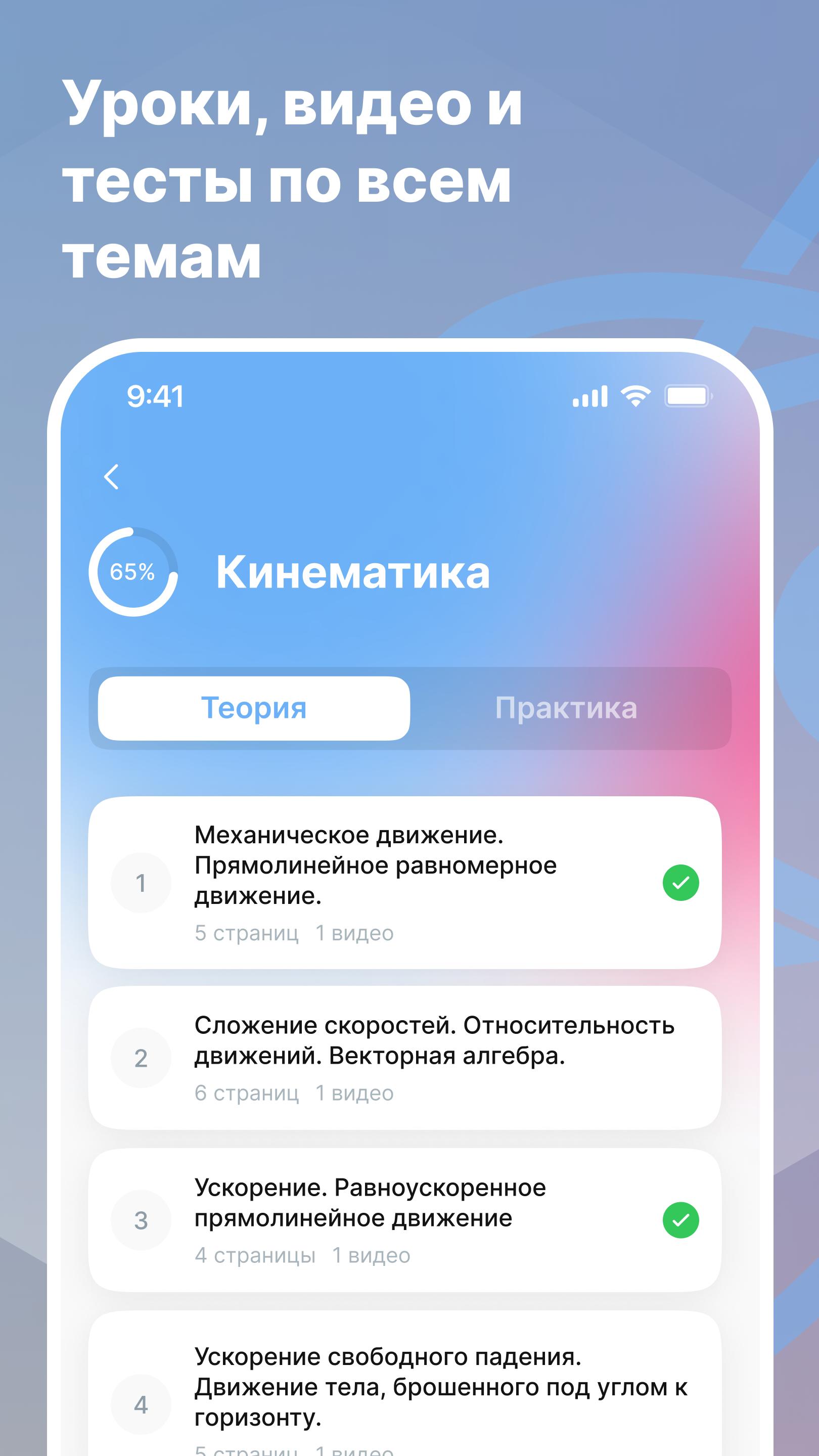 Prepare for the Unified State Exam and Unified State Exam in Physics in 2025 quickly and efficiently using this application. Created jointly with National Research Nuclear University MEPhI! Read all the theory, take tests on each topic and track your growing progress. Constant small training always at hand is a direct path to high scores in the exam.