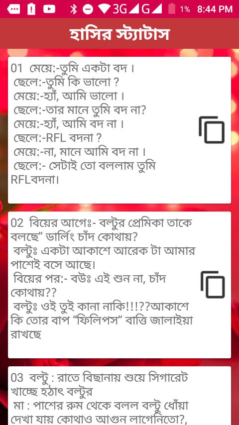 আমরা সকলে চাই মেয়েদেরকে পটানোর জন্য, কিন্তু সঠিক ভাবে উপস্থাপনা করতে না পারায় তারা আমাদের পোষ্টে লাইক কমেন্ট করে না। তাই আমরা এই অ্যাপের মাধ্যমে মেয়ে পটানোর সঠিক স্ট্যাটাস গুলো তুলে ধরেছি।Last updated on Aug 2, 2018