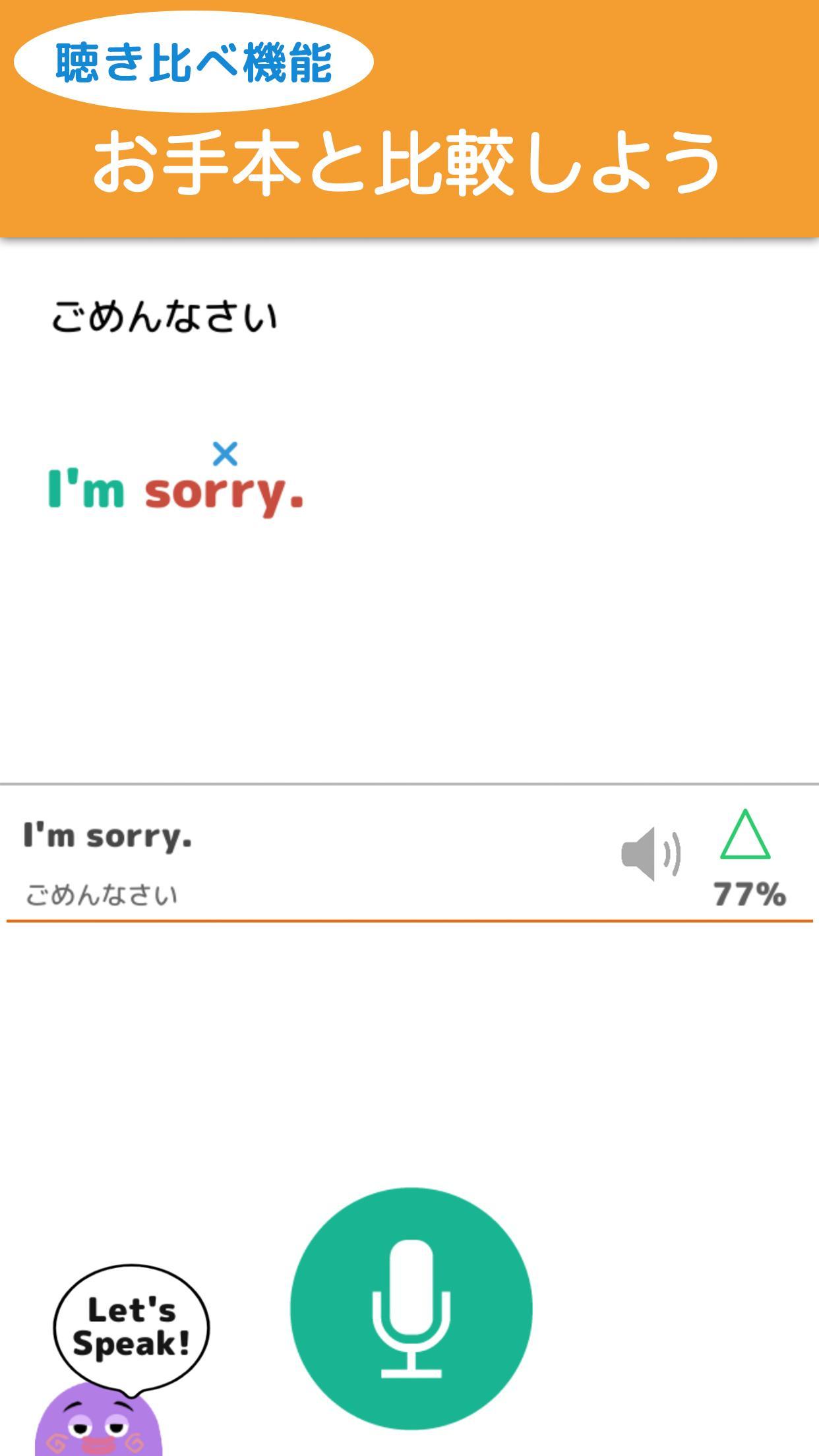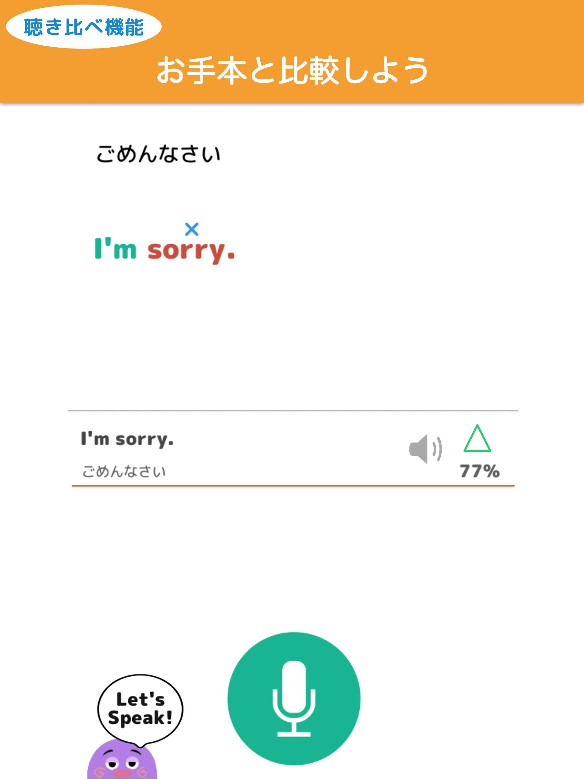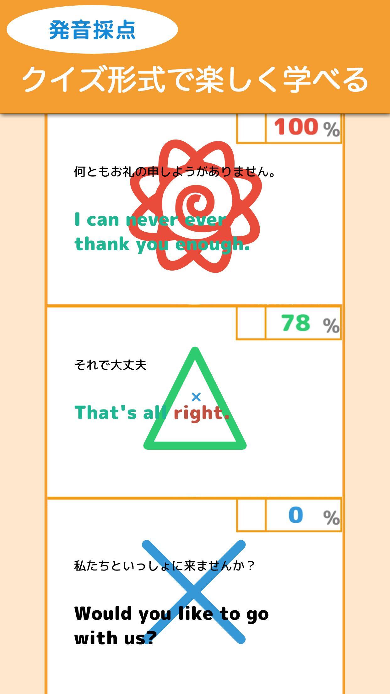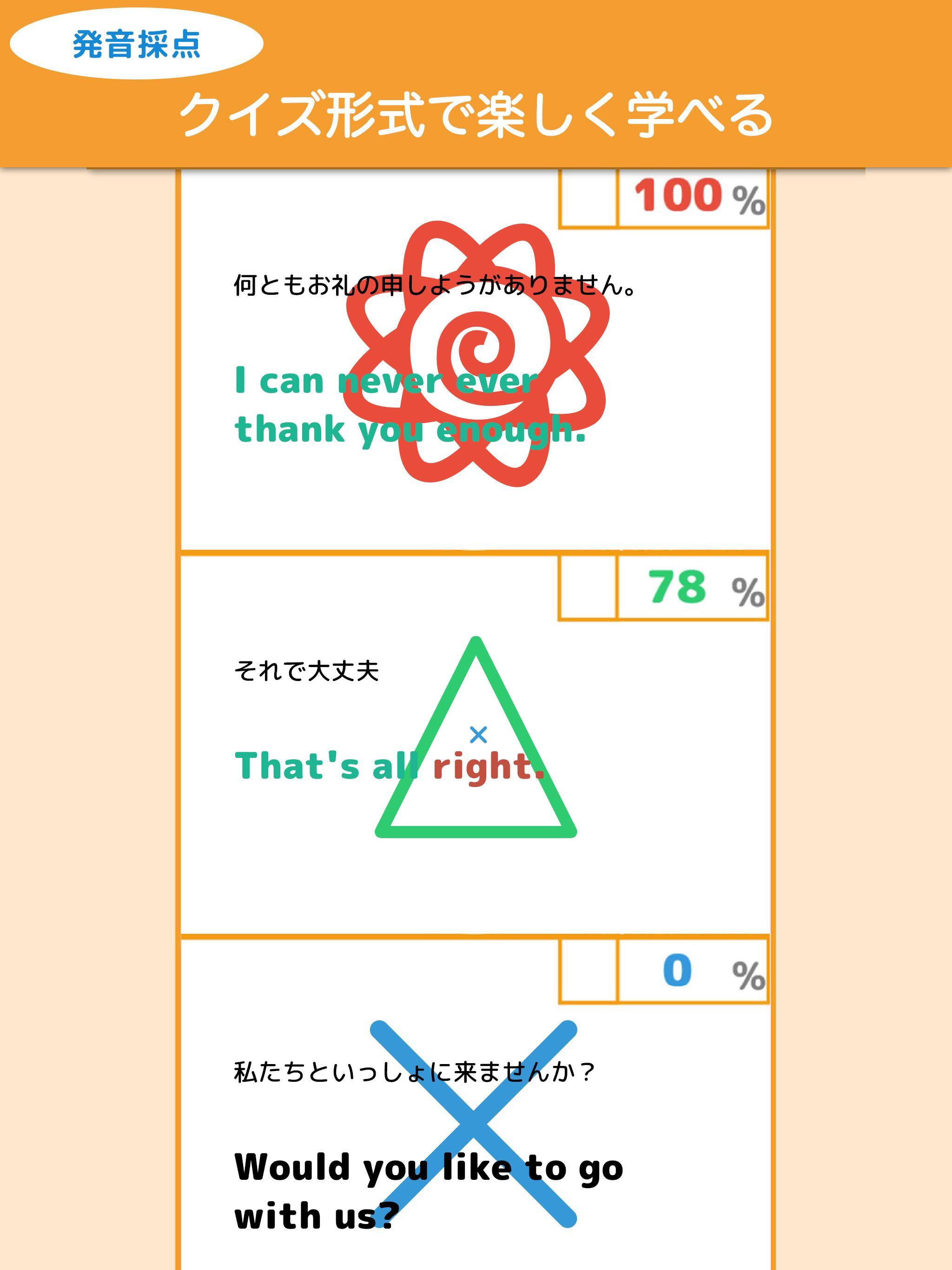 お手本音声が流れるので、発音と同時にリスニングの力も向上します。