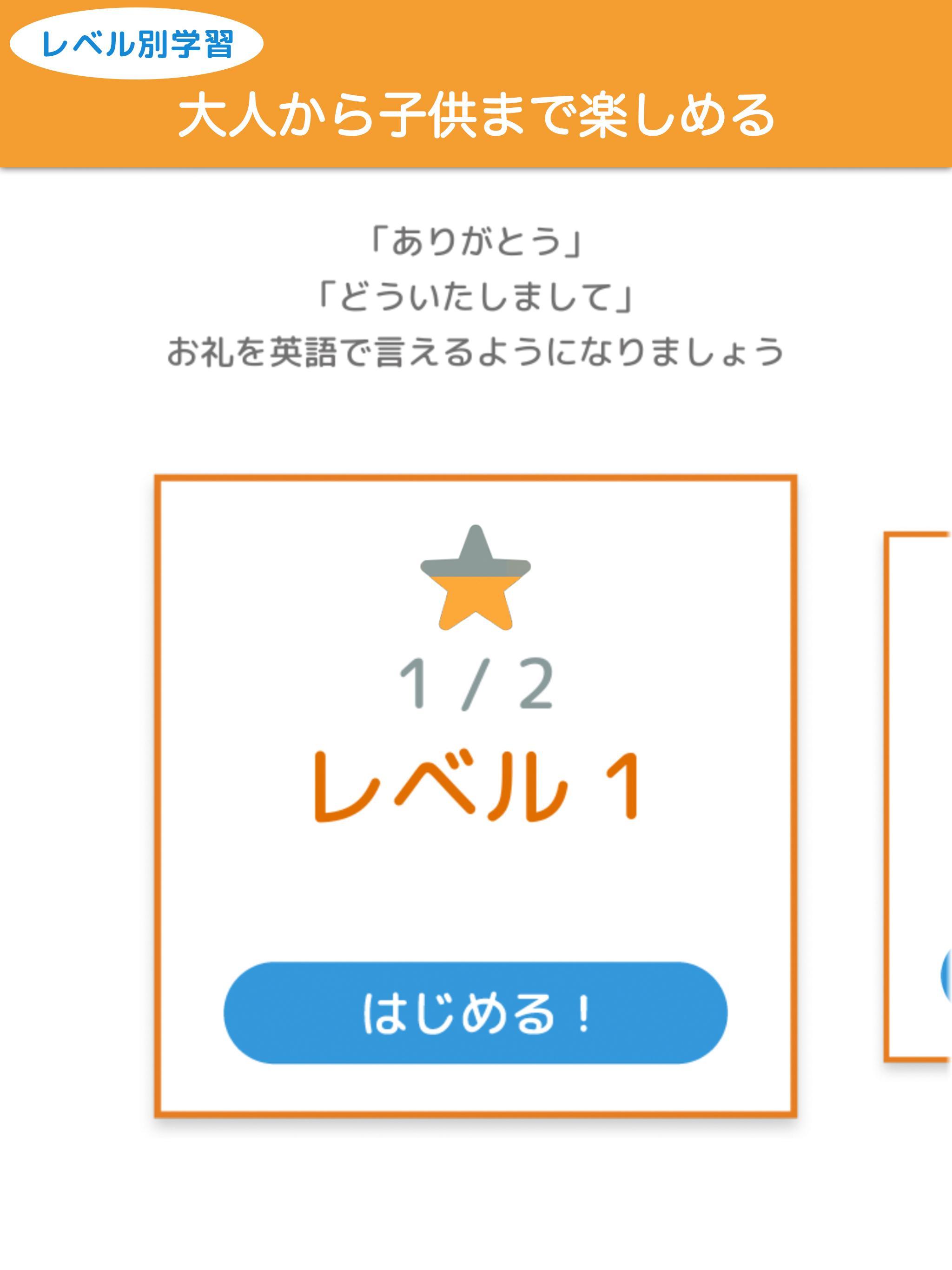 自由にレベルを選べるので、あなたの実力にあった難易度で学べます。