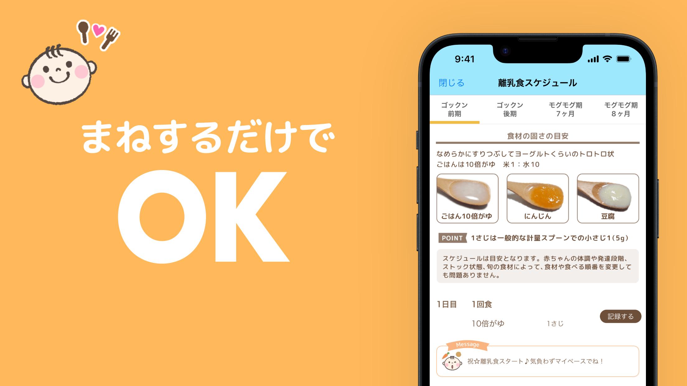 A baby food app that supports how to proceed with weaning food with a list of ingredients and a baby food schedule supervised by a nutritionist! You can share with your family what your baby eats, likes, dislikes, and allergies.