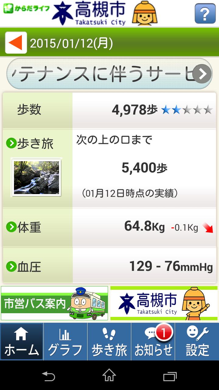 また、体重や血圧も記録でき、高槻市の健康情報も配信されるなど、健康管理ツールとしてもおすすめ。