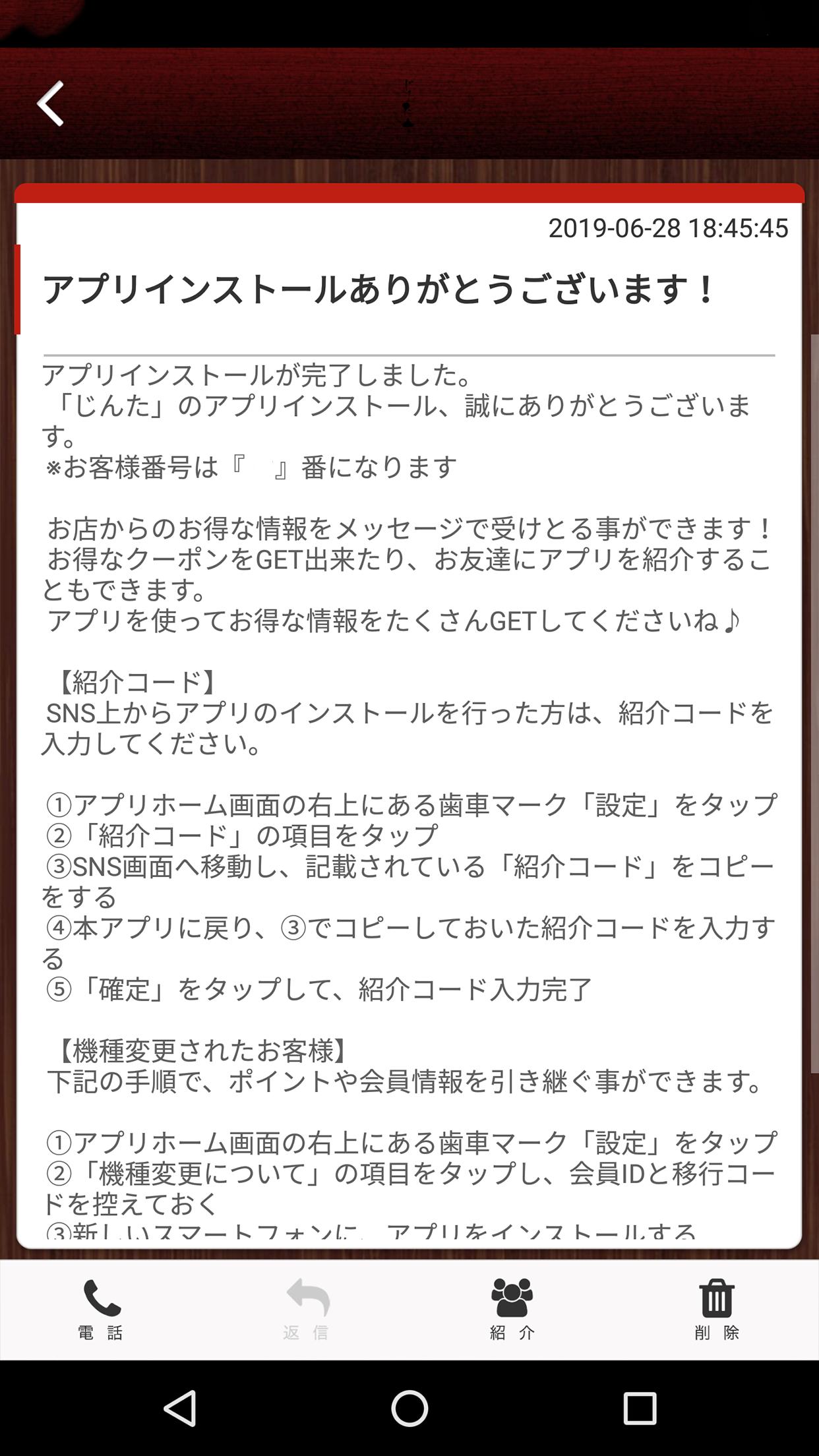 じんたのアプリをSNSを通じてお友達に紹介する事ができます。