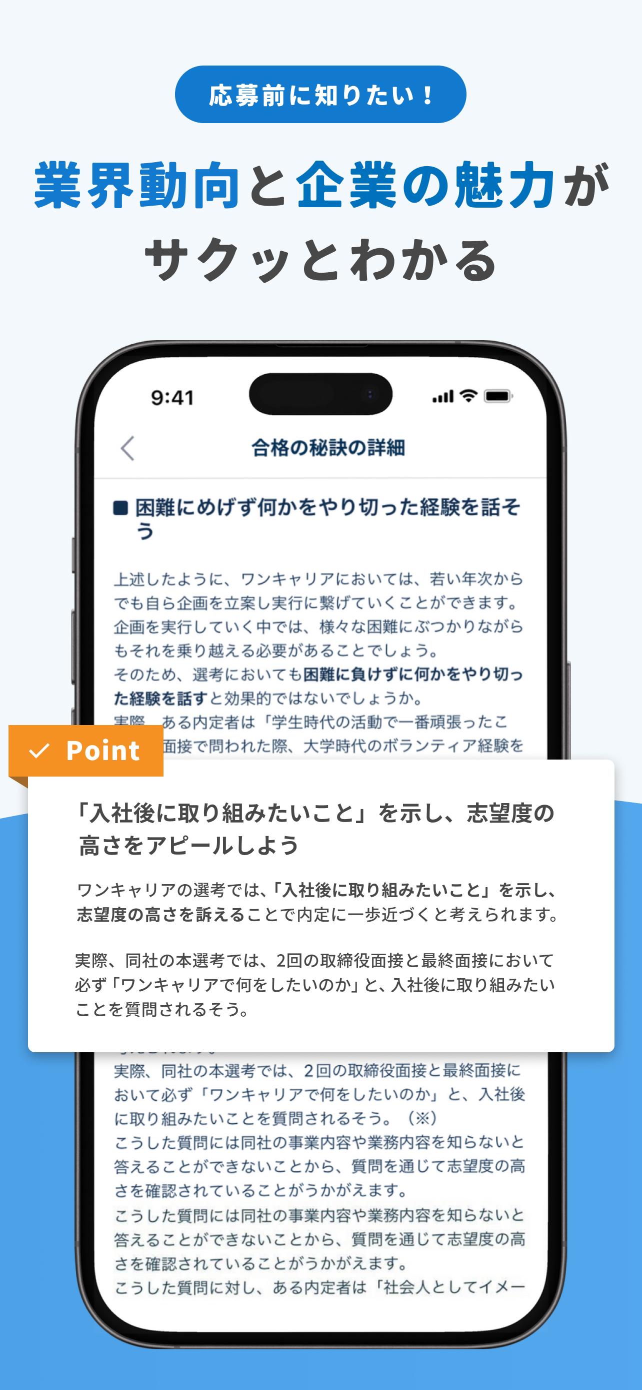 We provide only the information job-seekers truly want, free of charge, through information on selection processes and internship preparation from experienced candidates, as well as industry research based on interviews.