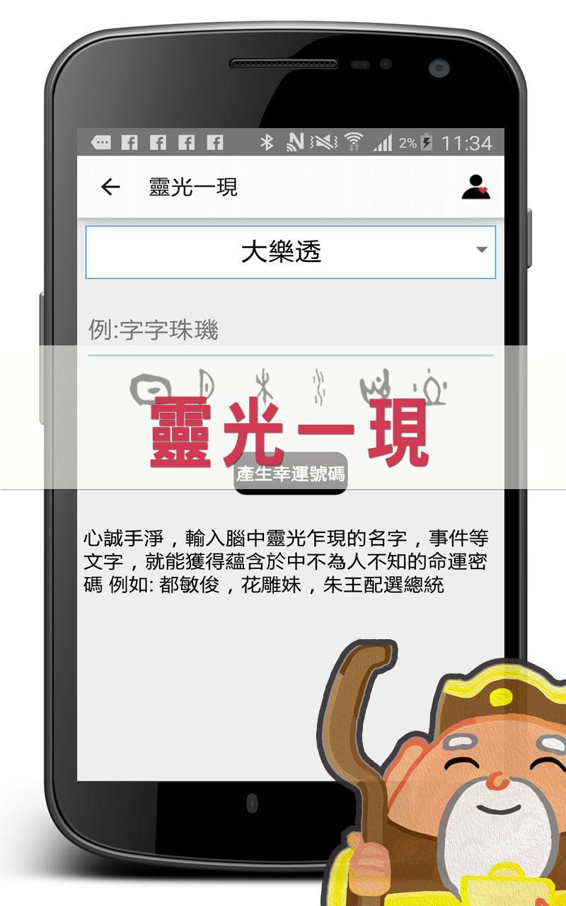 方便的樂透補助工具,除了每期獎號和頭獎累計資訊外,還提供 大樂透,威力彩,大福彩 使用"測字","財神加持"等方式選號,並用 QrCode 掃描讓您免簽單購買。