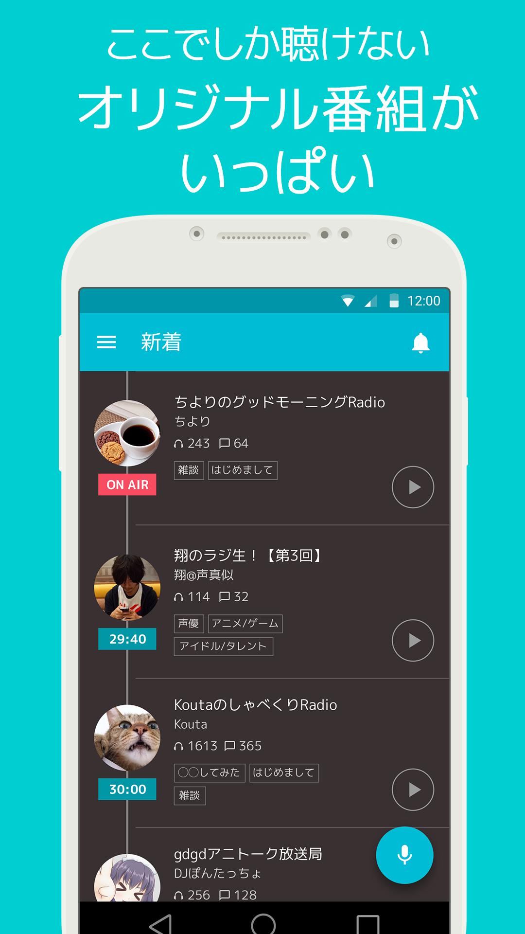 配信するのは音声だけ本格トークラジオ番組が無料で配信OK!ここだけの番組を聴ける!気の合う仲間ができる!“ゆるいのに本格的”な新しいラジオアプリ