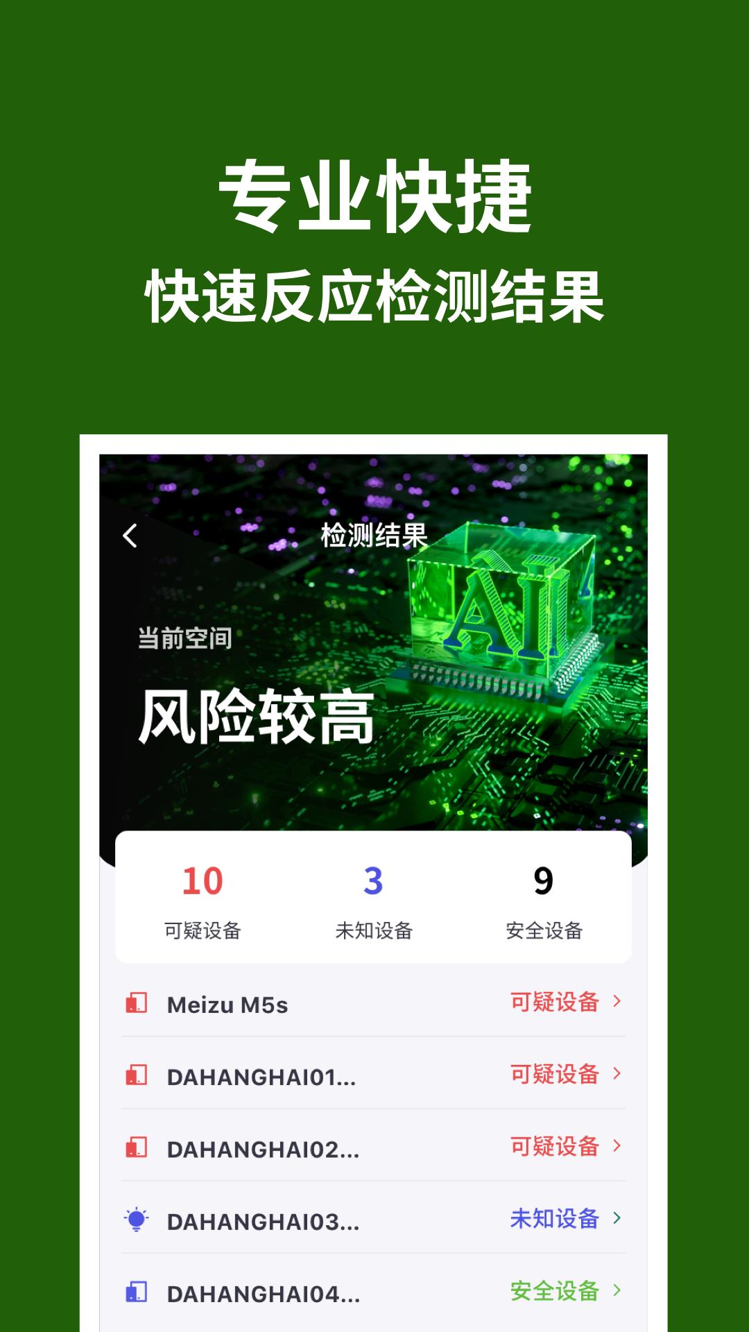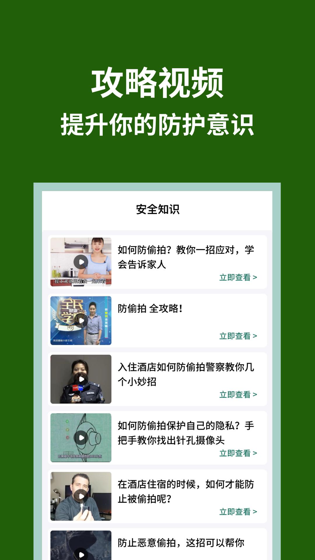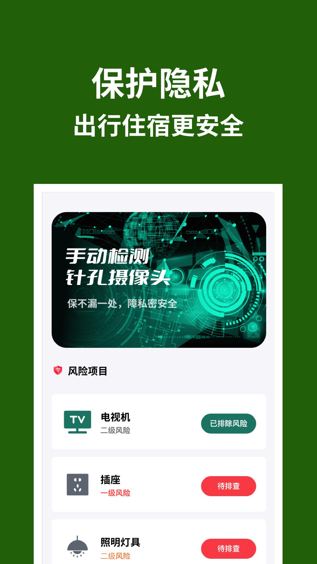 *防偷拍检测,快速检测房间内的隐藏摄像头,快速分析保护你的隐私,窥探设备无处隐藏,出行住宿更安心