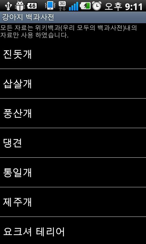 여러 종류의 개에 대한 품종, 특징 등 설명들이 있습니다.