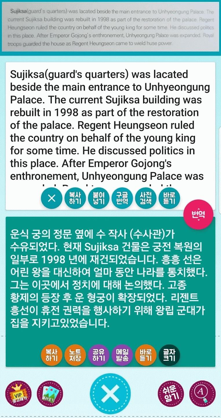 - 사진위로 번역문 바로보기 및 복사하기 지원