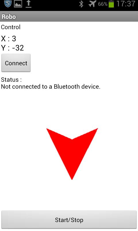 3. Tilt your phone at an angle of 20 or greater toward yourself (Values axis are displayed) this command will send ascii value equivalent to '2'. Now microcontroller can be programmed to move forward.