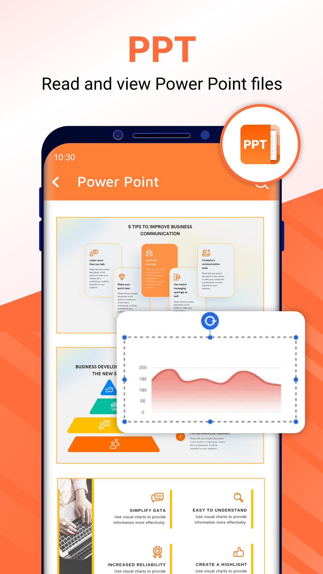 - Support PPT files, pptx reader with high resolution and fast performance.