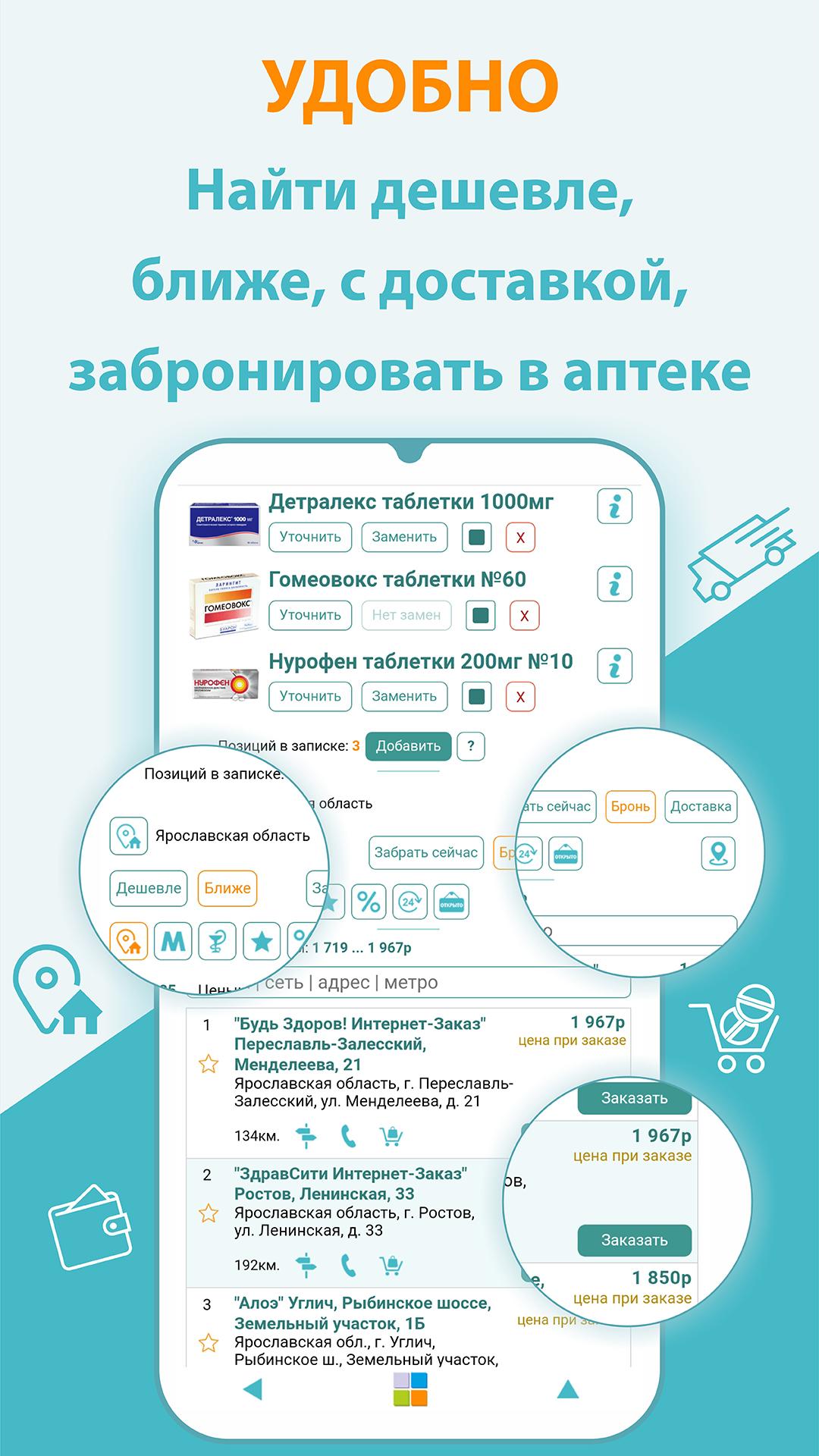 سيساعدك تطبيق صيدلية ياروسلافل في العثور على الأدوية وشرائها من الصيدليات الأقرب والأرخص. توصيل الأدوية. يتم عرض أسعار الأدوية على خريطة أو قائمة.