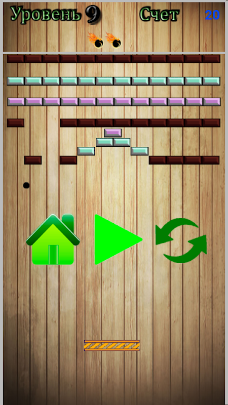 Игровой экран представляет собой приятный глазу фон из деревянных дощечек, на котором располагаются разноцветные блоки, которые нужно разбивать с помощью ядра, посылаемого движущейся платформой. Правила игры элементарны и будут понятны даже маленькому ребенку. В Разрушителе присутствует десять уровней сложности, с каждым последующем стена из блоков, которую нужно пробить, утолщается, а скорость полета ядра становится все выше.