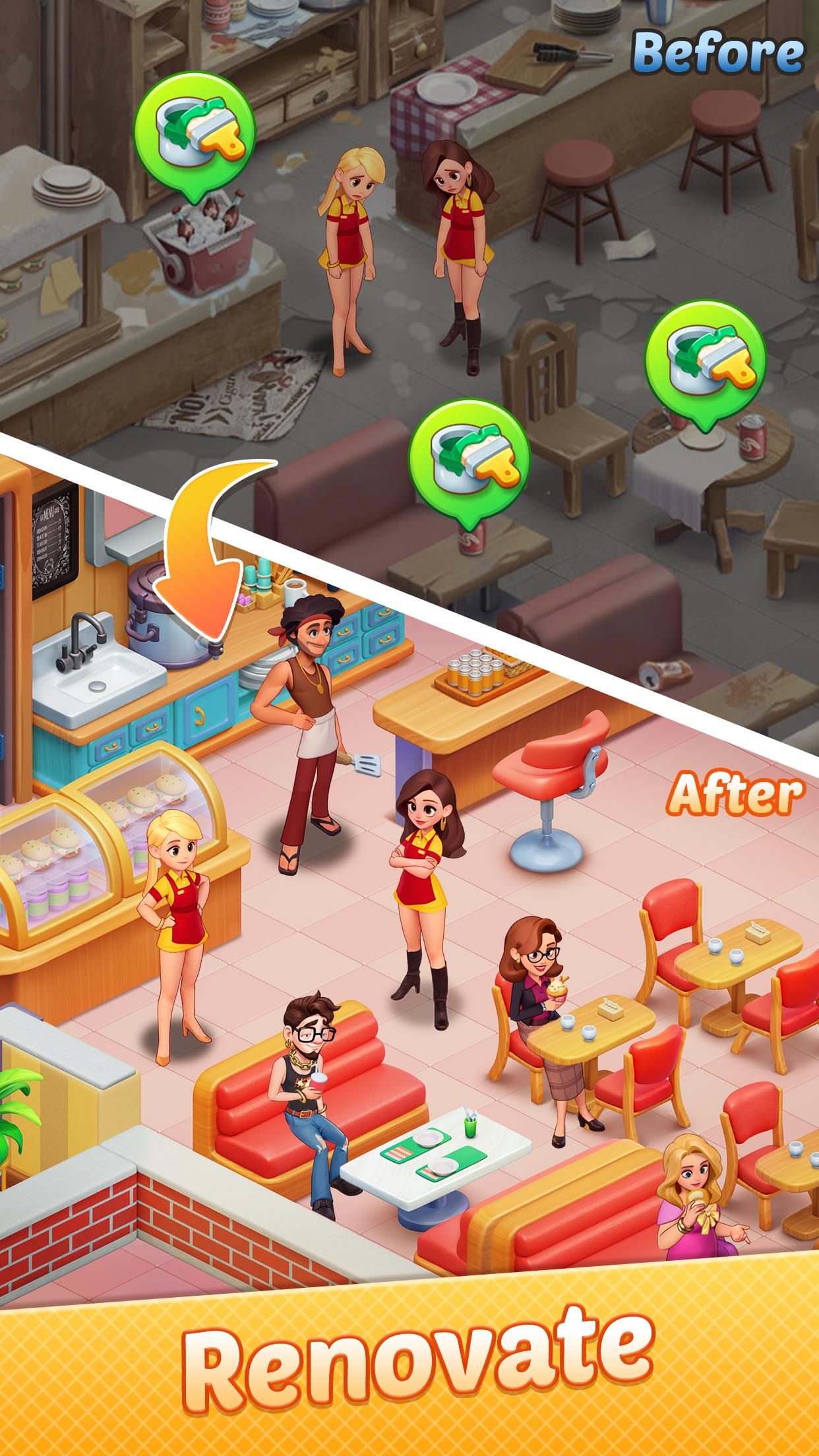 - ابتكري أطباقًا شهية وقدمي لزبائنك الشاي والدونات ومجموعة متنوعة من الأطباق الأخرى. كلما لعبتِ أكثر، زادت الوصفات التي ستفتحينها لإضافتها إلى قائمتك.