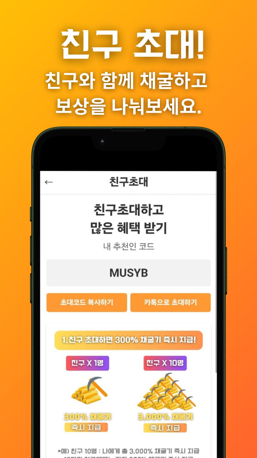 إذا قمت بدعوة صديق، فسيتم إضافة جزء من الذهب الذي استخرجه صديقك إلى الذهب الخاص بك. إذا استخدمته مع الأصدقاء، ستكون سرعة التعدين أسرع، ويمكنك تجميع المزيد من الأرباح مع الأصدقاء المدعوين. شاركها مع أصدقائك واستمتع بالفوائد معًا!