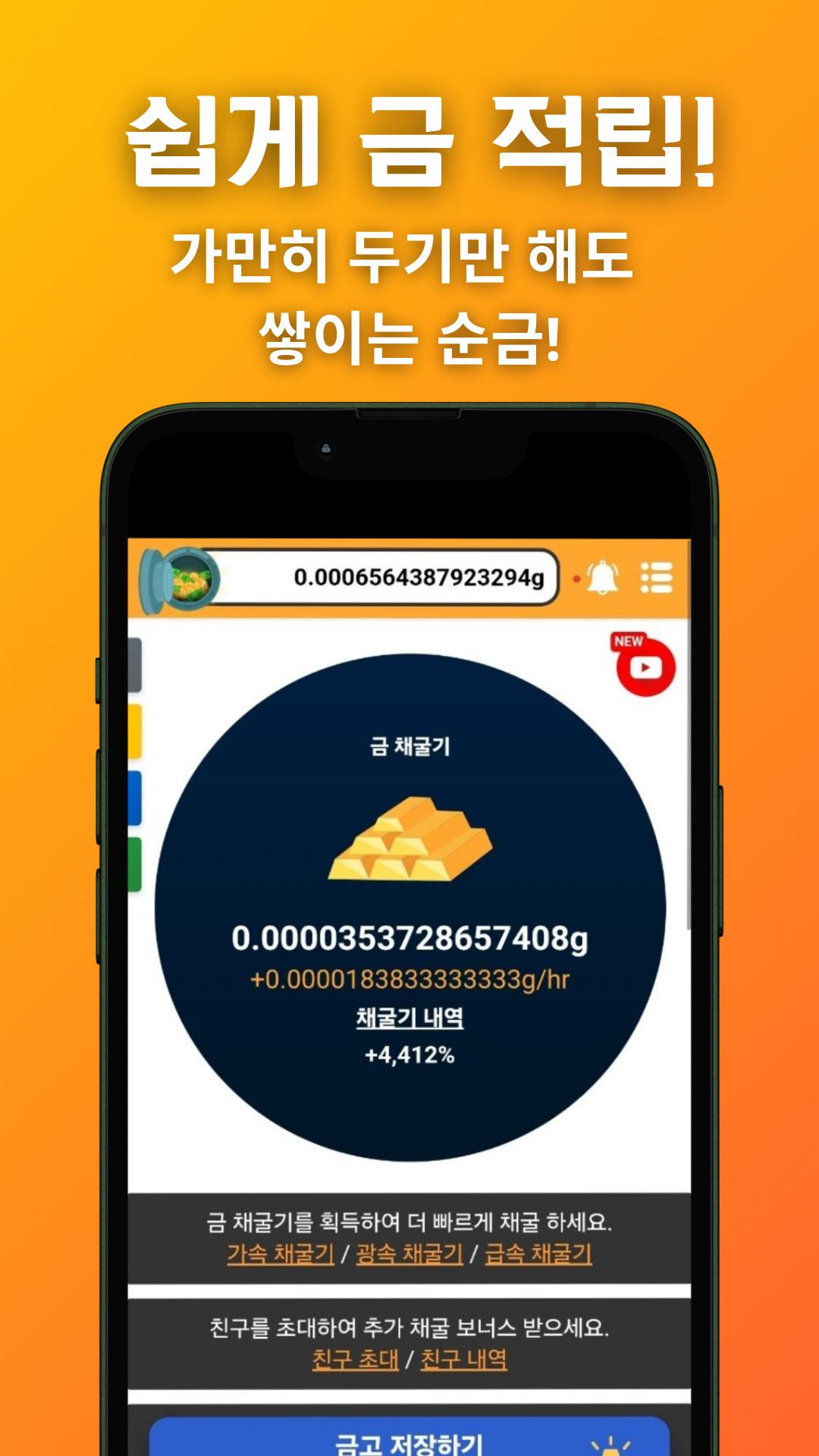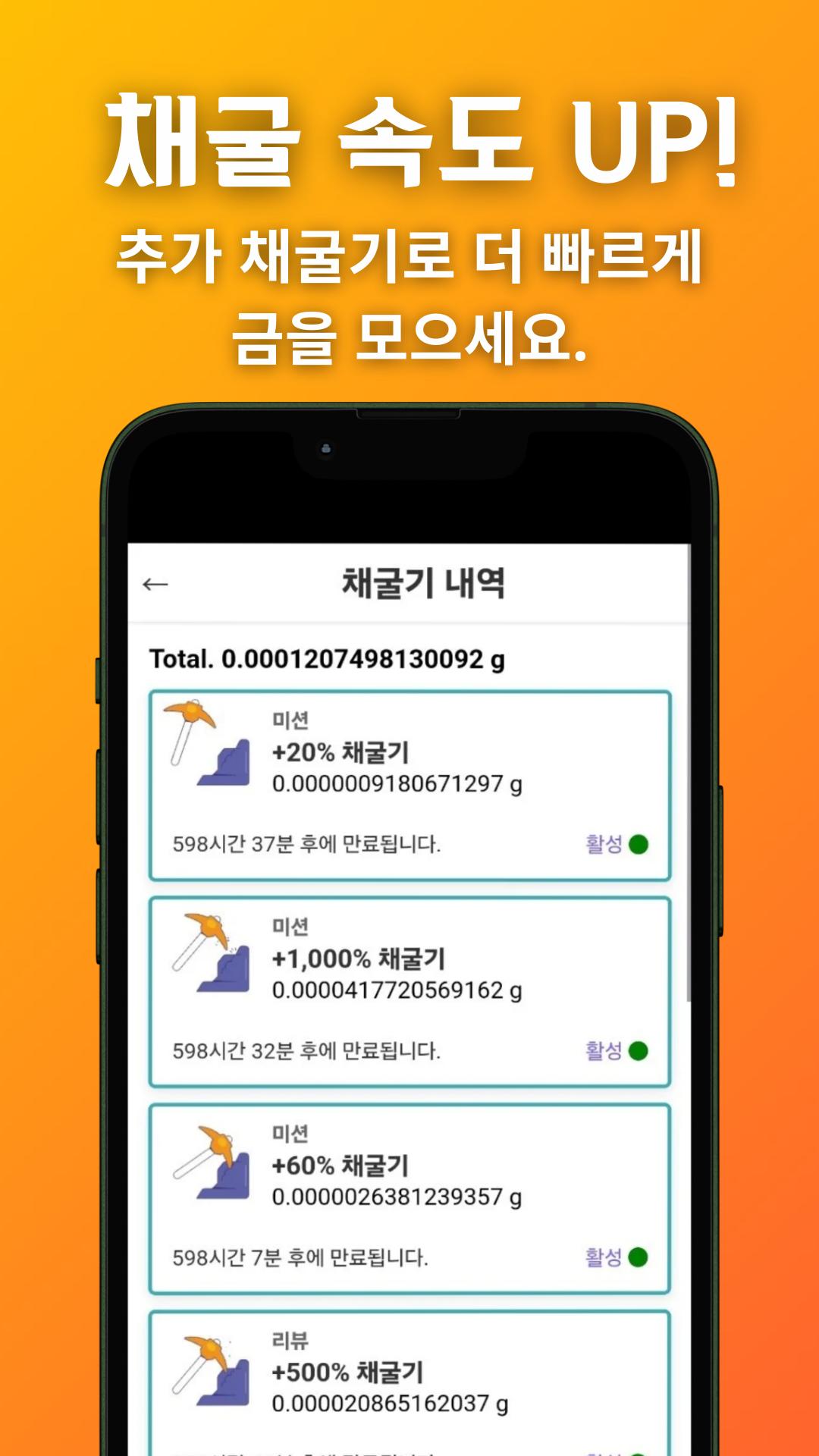 يتم استخراج الذهب تلقائيًا دون الحاجة إلى تشغيل التطبيق. يوفر تعدين الذهب نظامًا خاصًا يسمح لك بتجميع الذهب أثناء الوقوف، في أي وقت وفي أي مكان، دون الحاجة إلى تشغيل التطبيق. حتى لو نسيت وأعدت الاتصال، يمكنك رؤية الذهب متراكمًا.