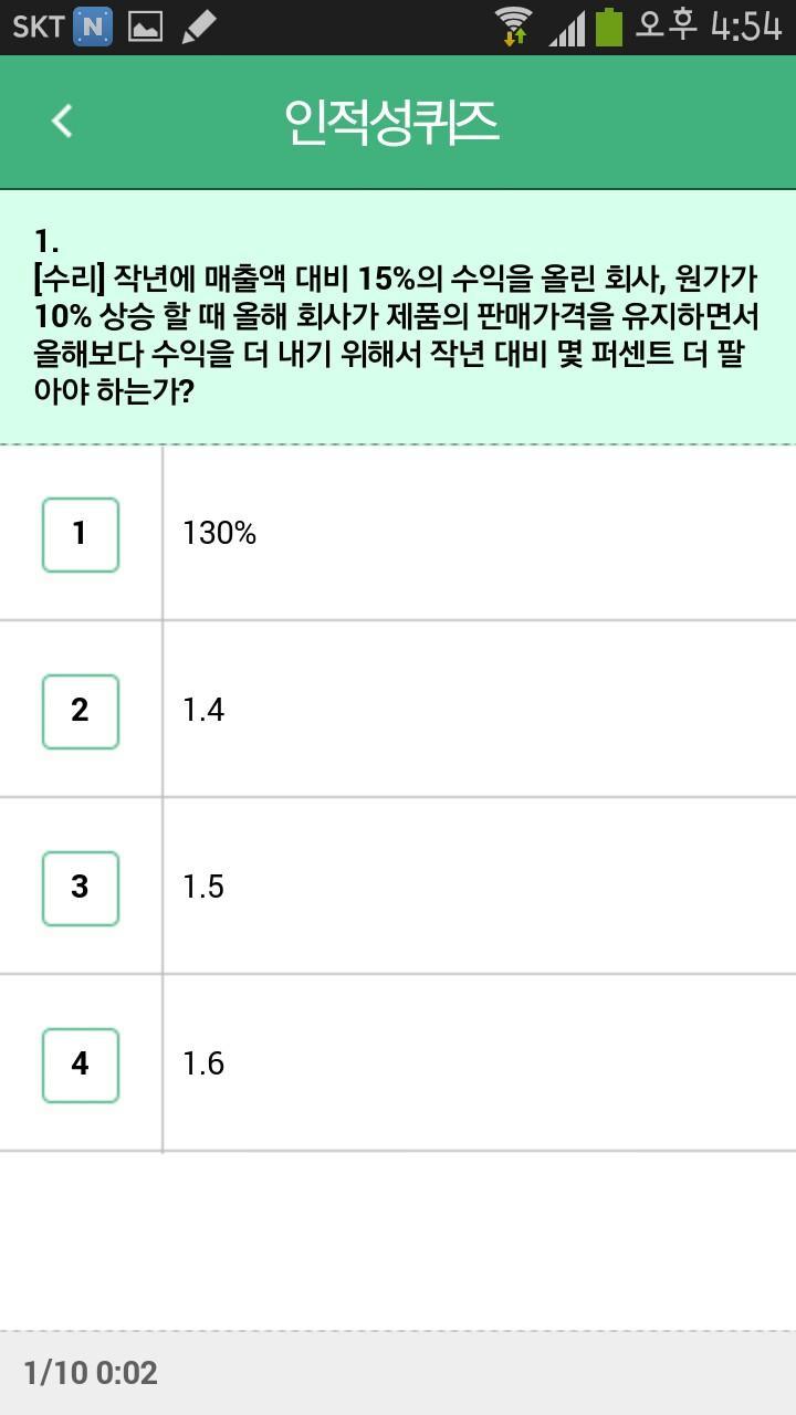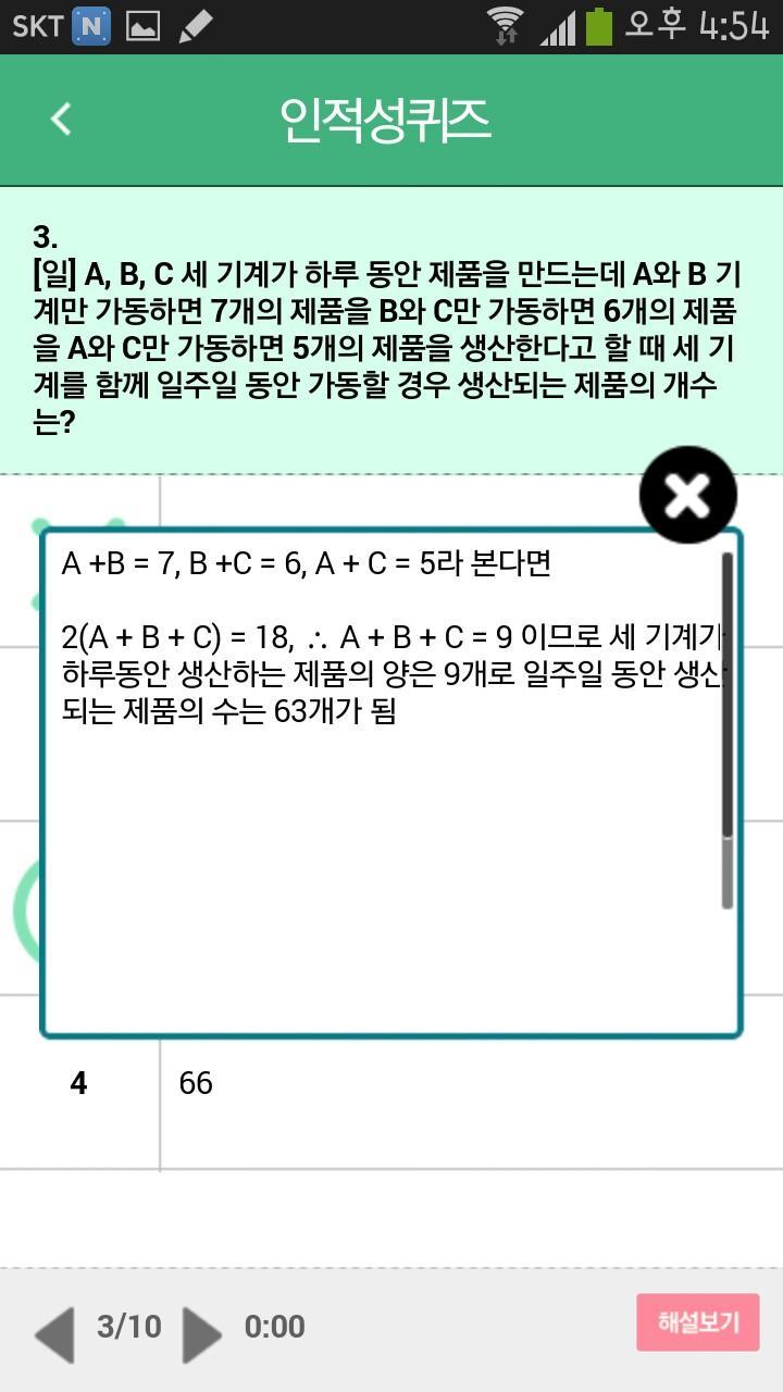 취업스터디 앱에서 하루 10문제씩 제공하는 인적성 퀴즈 전체 문제를 풀어볼 수 있는 버전 입니다.