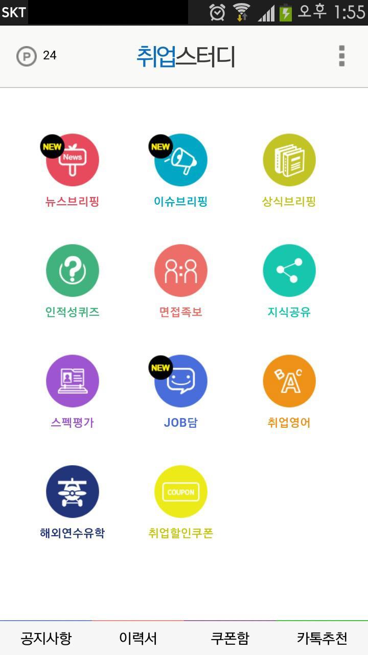 인적성퀴즈 부분을 제외하고는 취업스터디 앱과 동일합니다.