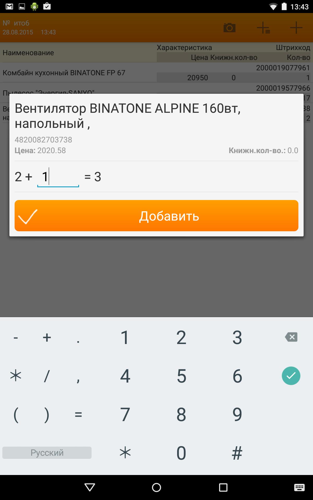 ● указание количества товара при вводе штрихкода;