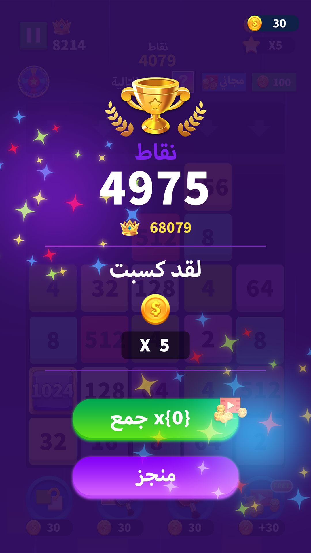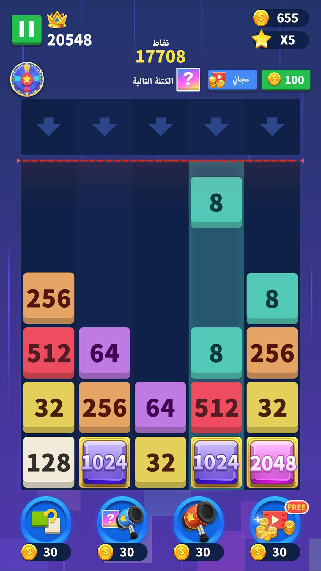 اضغط على القطع الملونة من نفس الرقم وأسقطها وقم بدمجها لتسجيل نقاط عالية! على سبيل المثال 1024 -> 2048 -> 4096 وما إلى ذلك حتى ما لا نهاية. كلما كبر عدد الدمج الذي تصل له، كلما زات النقاط التي تحصل عليها! ضع في حسبانك ان التحدي يزداد تدريجيا مع كتل الأرقام الكبيرة.