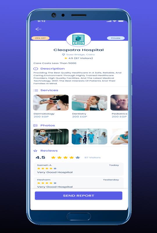 من خلال التطبيق يمكنك الحجز في المستشفيات او العيادات او طلب خدمه من منهم او اسعافLast updated on 06/03/2022