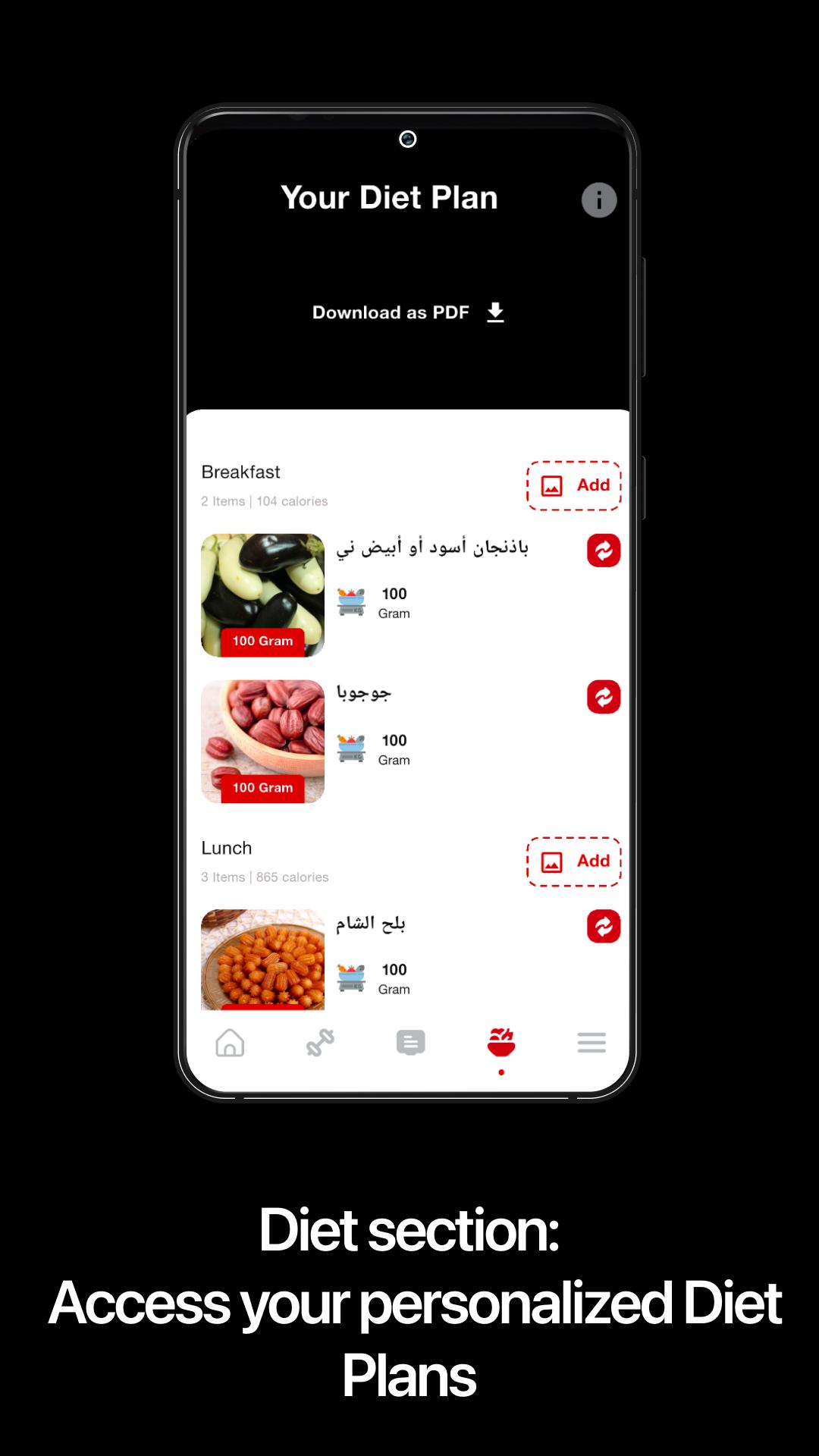 1. نظام غذائي وتمارين مُخصصة: استبيان داخل التطبيق، بالإضافة إلى تحميل صور ومقاييس لتحديد خط البداية بدقة.