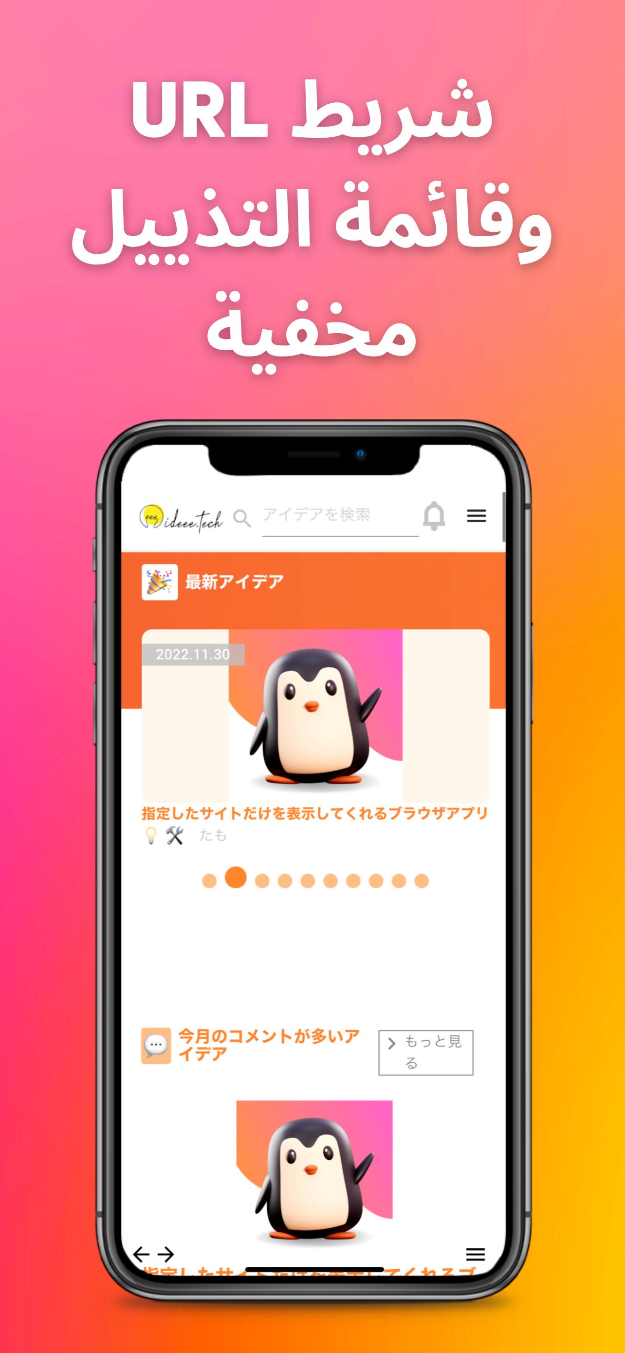 يخفي شريط URL وشريط التذييل الموجود في المتصفحات القياسية ، بحيث يمكنك عرض المواقع على شاشة أكبر.