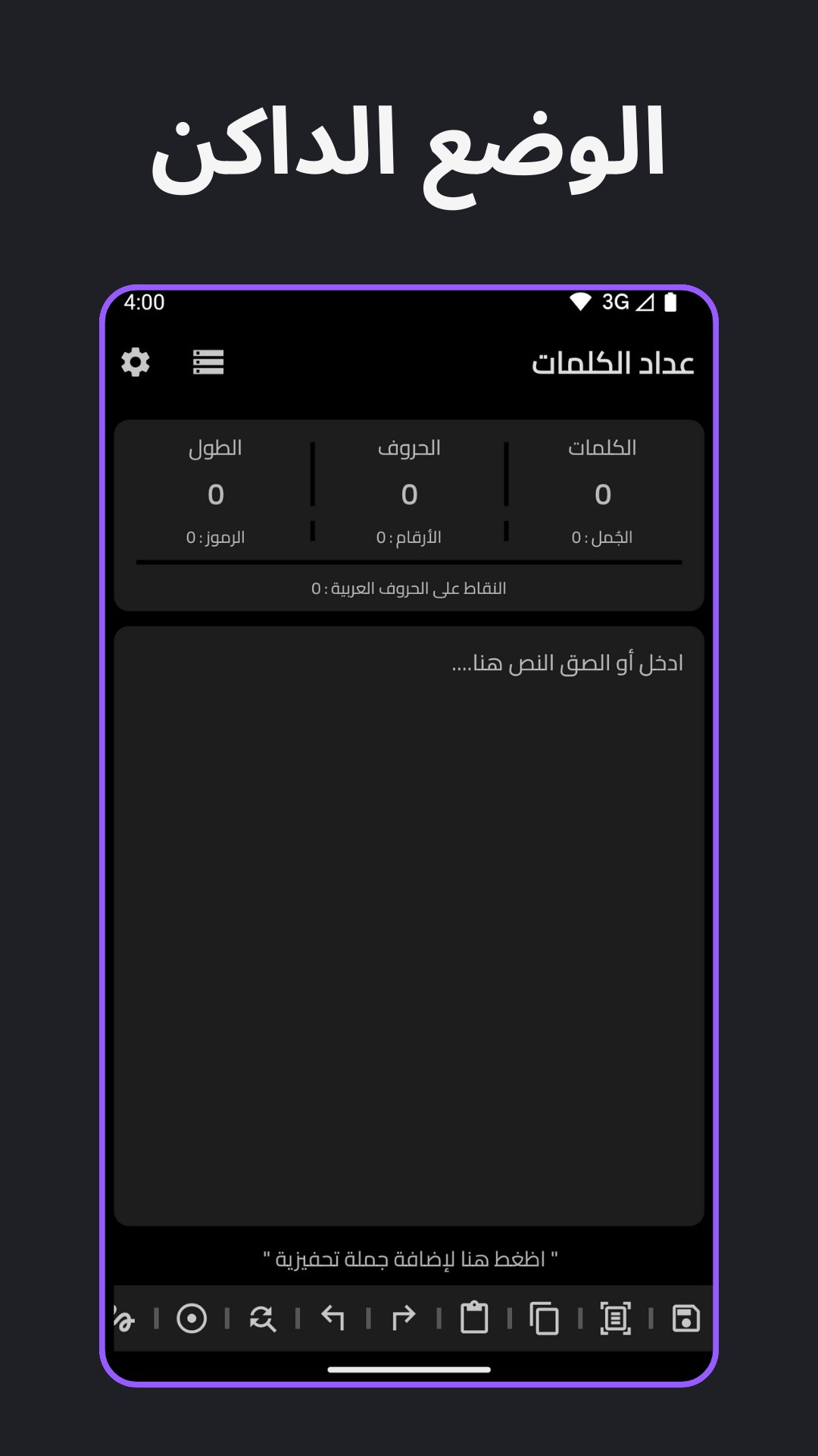 🌙 دعم الوضع الداكن (Dark Mode): مريح للعين أثناء الكتابة الليلية.