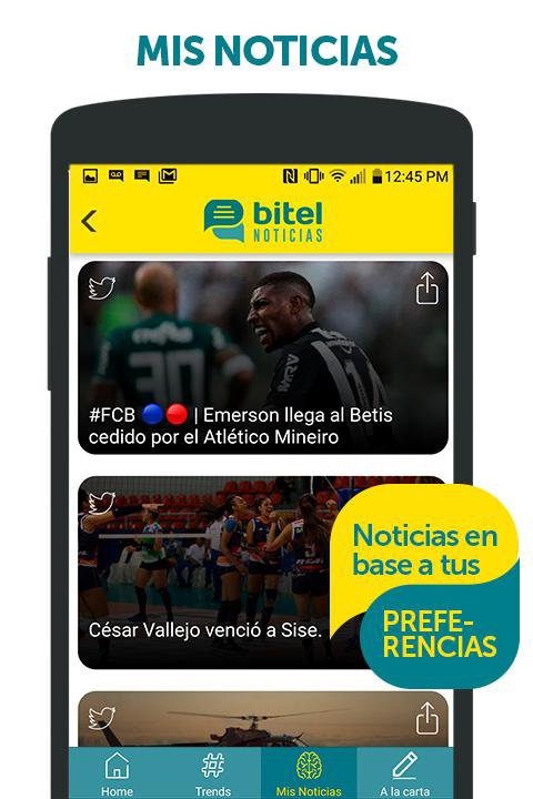 Bitel Noticias es la mejor manera de informarse, de manera rápida, sencilla y siempre al alcance de tu mano.