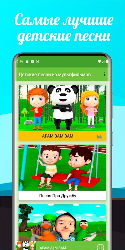 অ্যাপ্লিকেশনটিতে বাচ্চাদের পছন্দের কার্টুন থেকে সেরা গান রয়েছে।