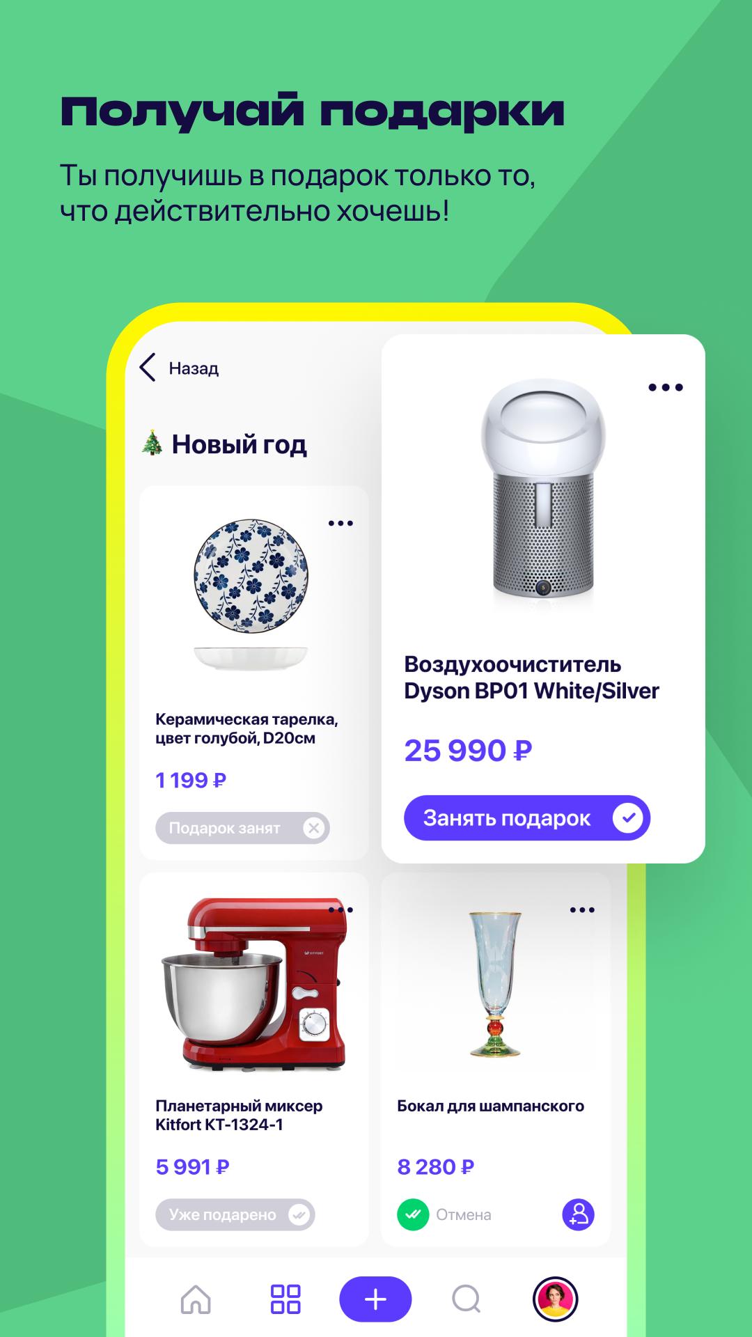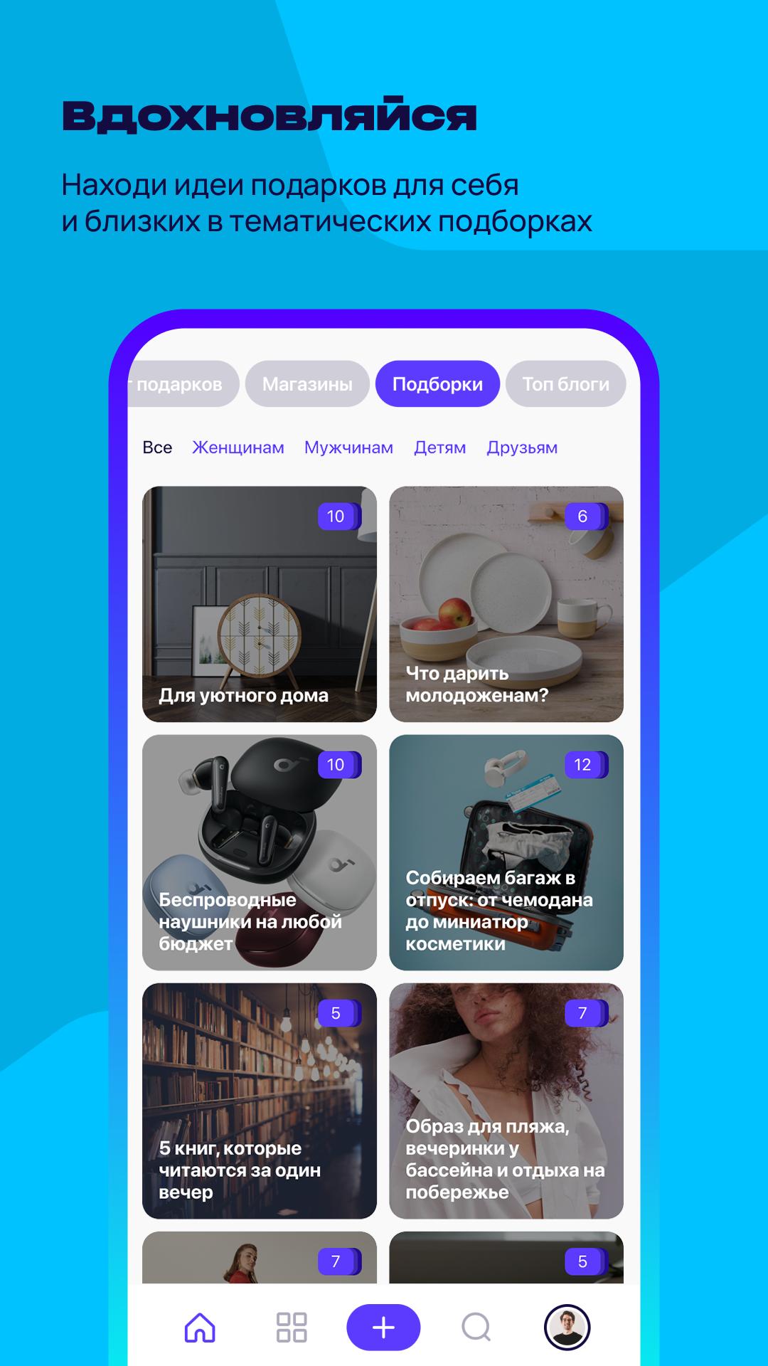 • আপনার বন্ধুদের ইচ্ছা তালিকা দেখুন. আমাদের পরিষেবার সাথে, আপনি সর্বদা আপনার প্রিয়জন বা সহকর্মীদের কী দিতে হবে তা জানতে পারবেন: অ্যাপ্লিকেশনটিতে একটি নিউজ ফিড রয়েছে যেখানে আপনি আপনার বন্ধুদের সমস্ত নতুন শুভেচ্ছা এবং আরও অনেক কিছু দেখতে পাবেন!
