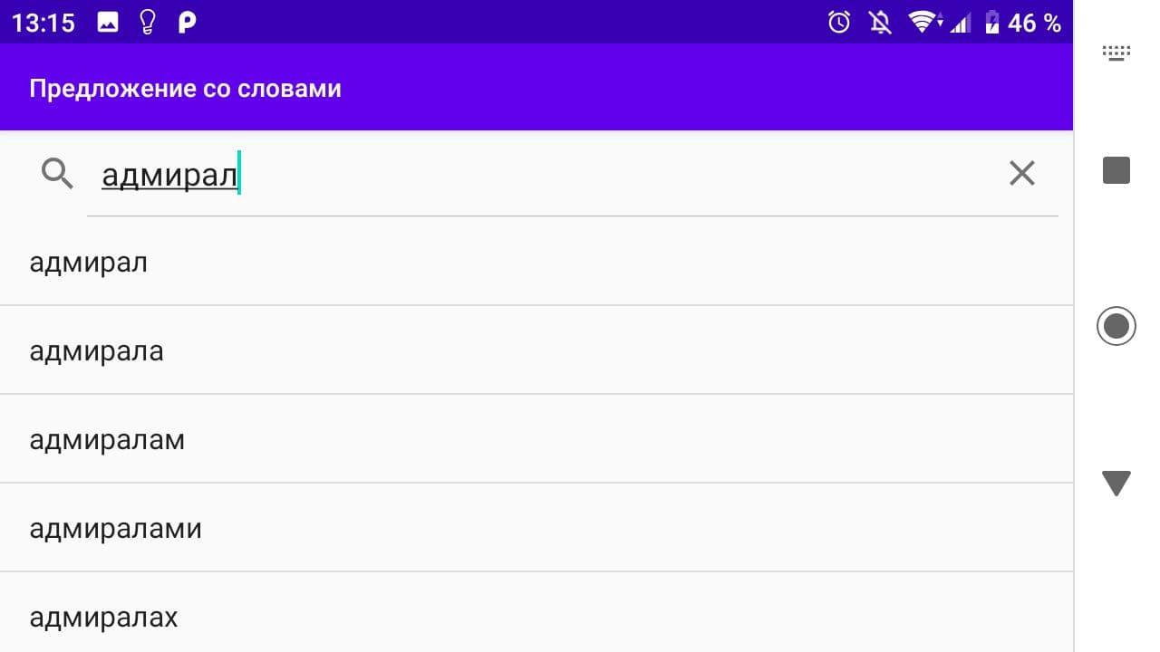 একটি শব্দ দিয়ে একটি বাক্য তৈরি করতে, অনুসন্ধানে আপনার শব্দটি প্রবেশ করান এবং তালিকা থেকে পছন্দসই শব্দটি নির্বাচন করুন, অ্যাপ্লিকেশনটি আপনার শব্দের সাথে সমস্ত বাক্য সন্ধান করবে, যাতে এটি বাক্যটির বিভিন্ন সদস্য হিসাবে কাজ করবে।