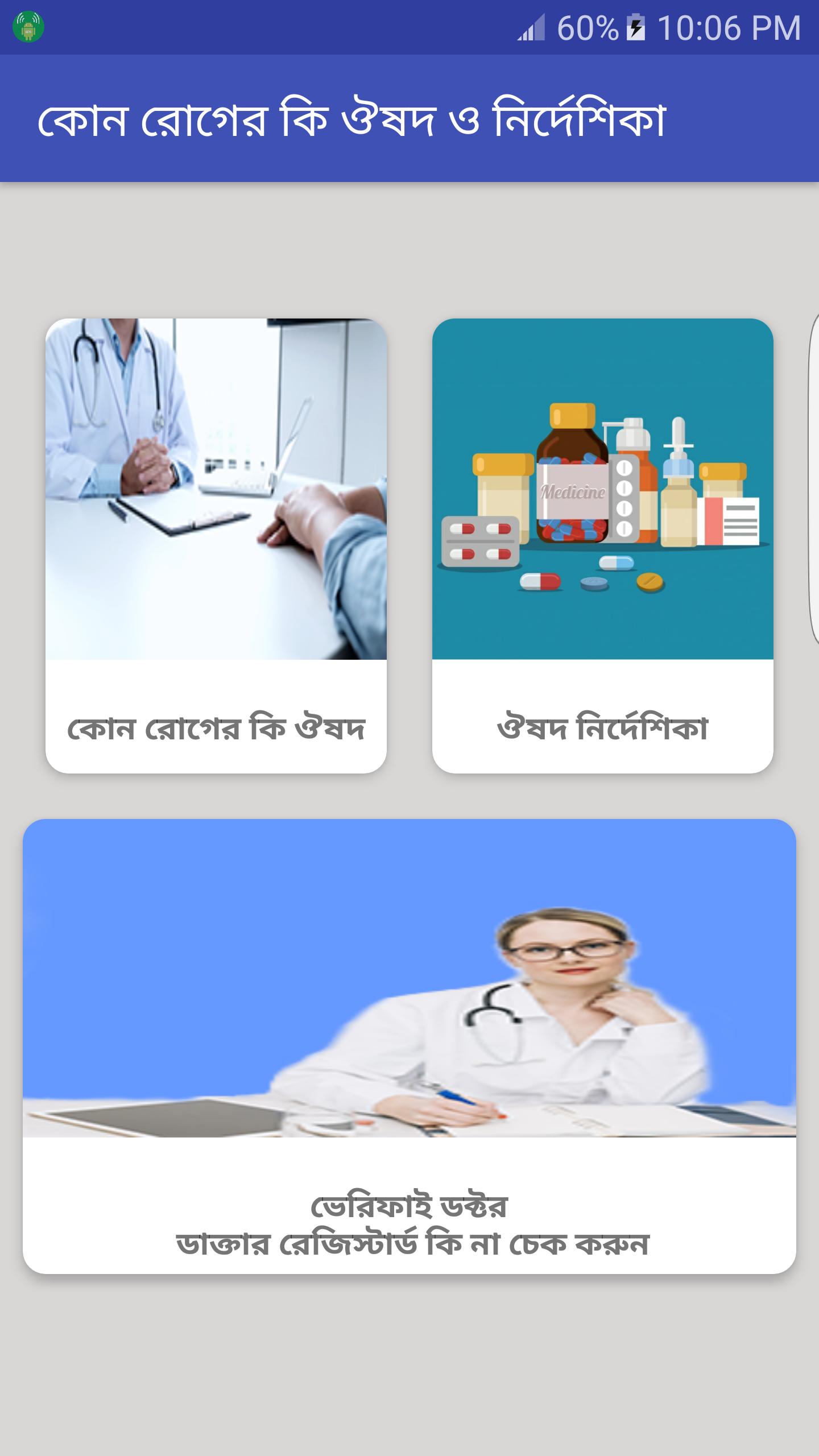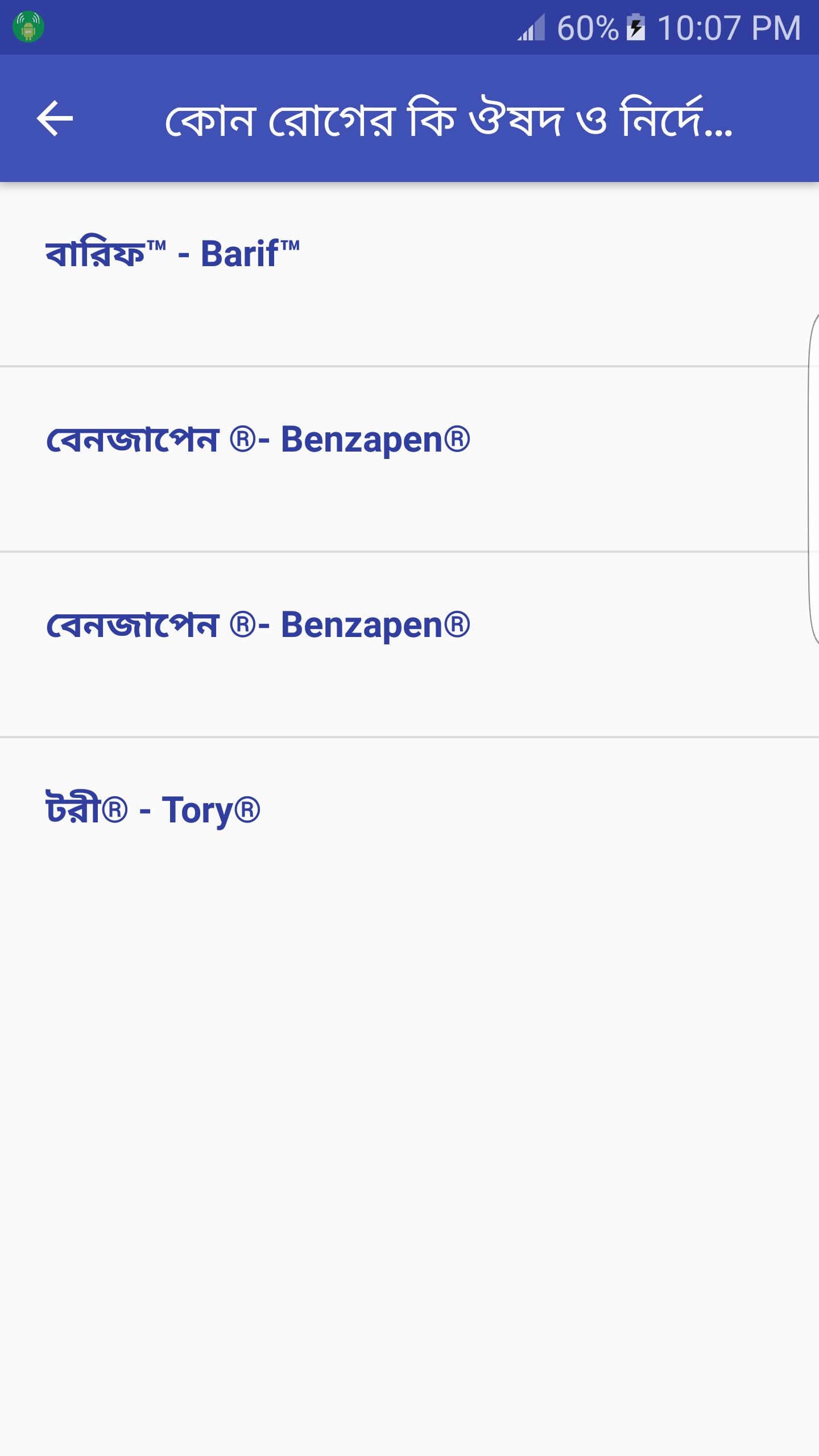 এ অ্যাপে আর আছে বাংলাদেশের সকল ঔষদের ব্যাবহার ও নির্দেশনা।আপনি কোন ঔষদ কেনার পর যদি ওই ঔষদের ব্যাবহার না জানেন তাহলে কোন রোগের কি ঔষদ ও ঔষদ নির্দেশিকা অ্যাপে গিয়ে আপনার ঔষদের নাম দিয়ে সার্চ করলে ওই ঔষদের ব্যাবহার,নির্দেশনা,মাত্রা,সাইড ইফেক্ট সব