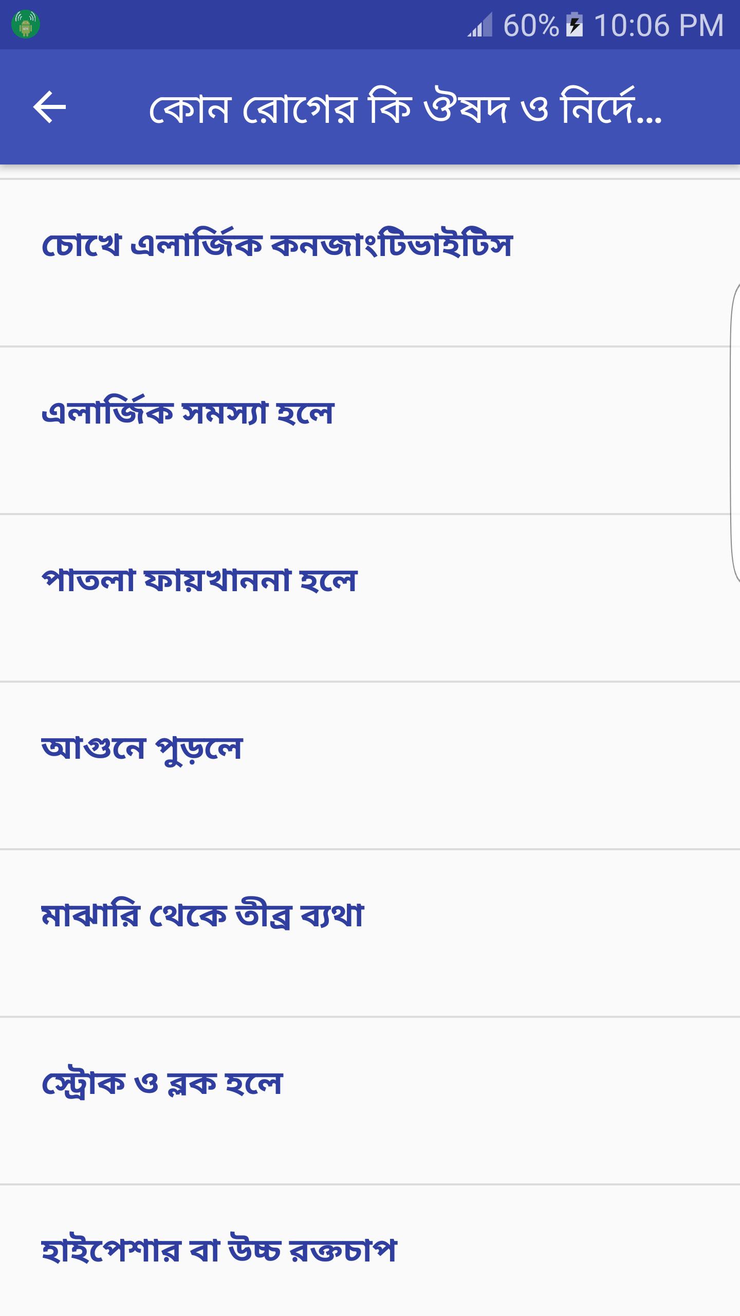 কোন রোগের কি ঔষদ ও ঔষদ নির্দেশিকা অ্যাপে আছে সকল সাধারন রোগের ঔষদ ও ঔষদ ব্যাবহারের সঠিক নির্দেশনা।এ অ্যাপে সকল রোগের একটা লিস্ট আছে ওই লিস্ট থেকে আপনি সহজে আপনার রোগের ঔষদ খুজে পাবেন এবং ওই ঔষদ প্রয়োগ করতে পারবেন ডাক্তারের পরামর্শ ছাড়া।