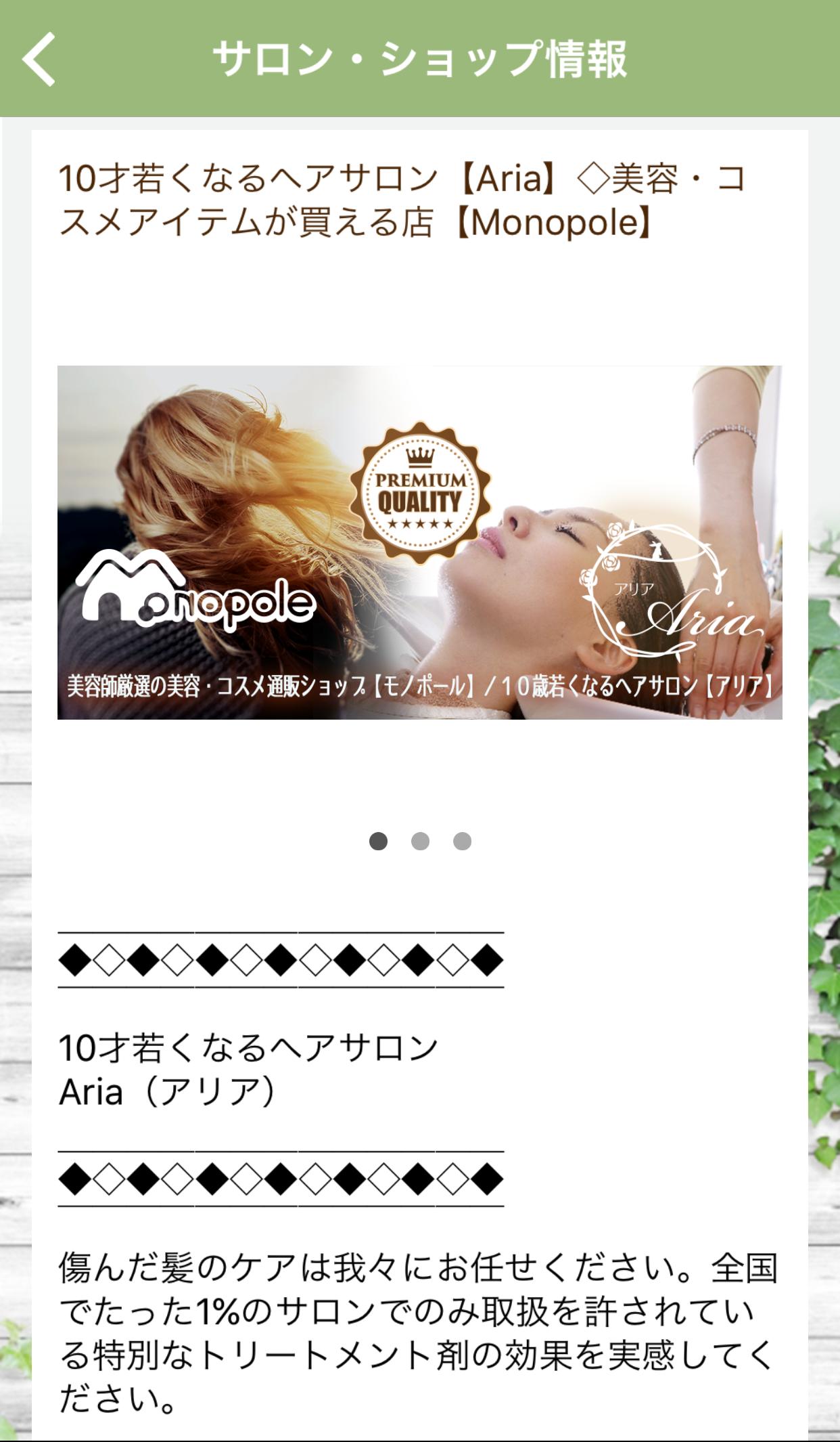 アルマダ電子トリートメント正規取扱店!お花茶屋の10歳若くなるヘアサロンや美容師厳選の美容・コスメ通販までを取り扱う【アリア&モノポール】の共通公式アプリです。