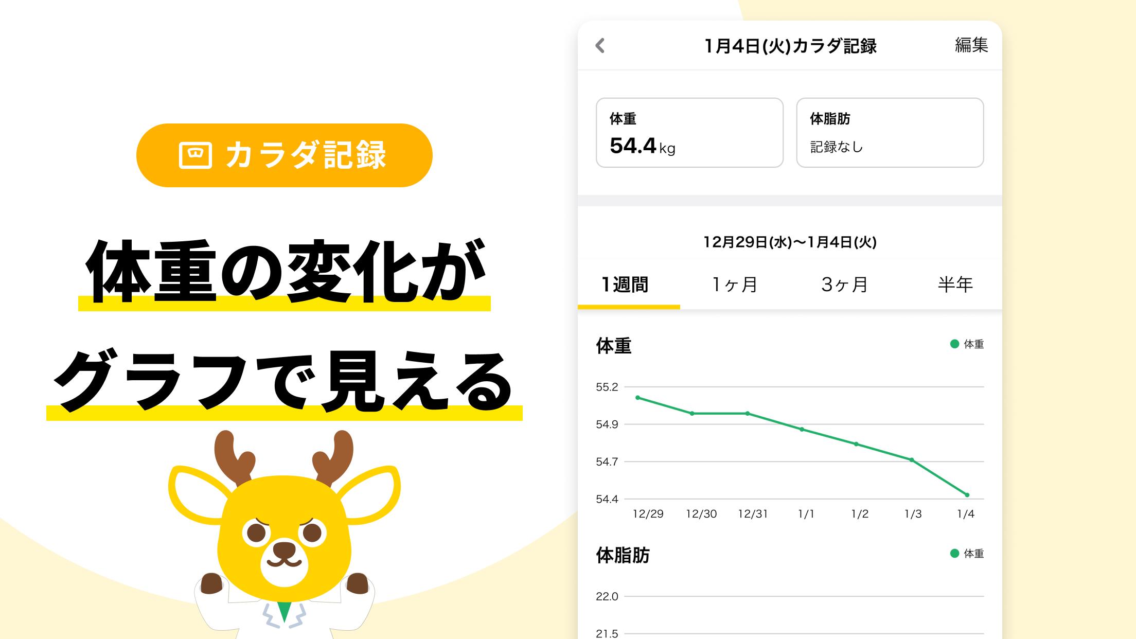 আপনি সহজেই আপনার ওজন এবং শরীরের চর্বি শতাংশ পরিচালনা করতে পারেন. আপনার স্বাস্থ্যের অবস্থা পরীক্ষা করতে আপনার দৈনিক ওজন এবং শরীরের চর্বি রেকর্ড করুন। আপনার স্বাস্থ্যের অবস্থা কল্পনা করা হয়েছে, তাই আপনি সমস্যাগুলি আবিষ্কার করতে পারেন।