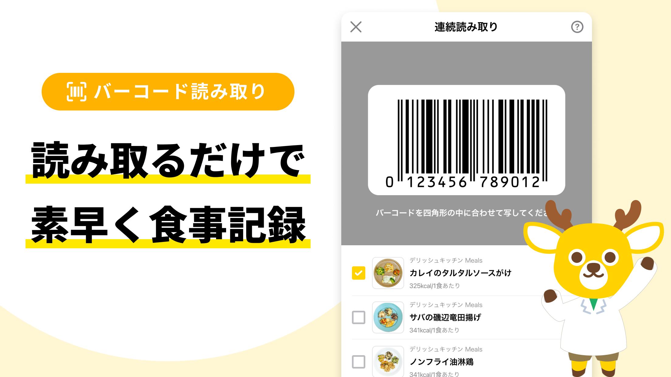 ডায়েটিং এবং স্বাস্থ্য ব্যবস্থাপনার জন্য আদর্শ! বারকোড এবং চিত্র বিশ্লেষণ ব্যবহার করে সহজেই ক্যালোরি গণনা করুন! একটি স্বাস্থ্যসেবা অ্যাপ যা আপনাকে সহজেই আপনার খাবার রেকর্ড করে ক্যালোরি এবং পুষ্টির ভারসাম্য ট্র্যাক করতে দেয়।