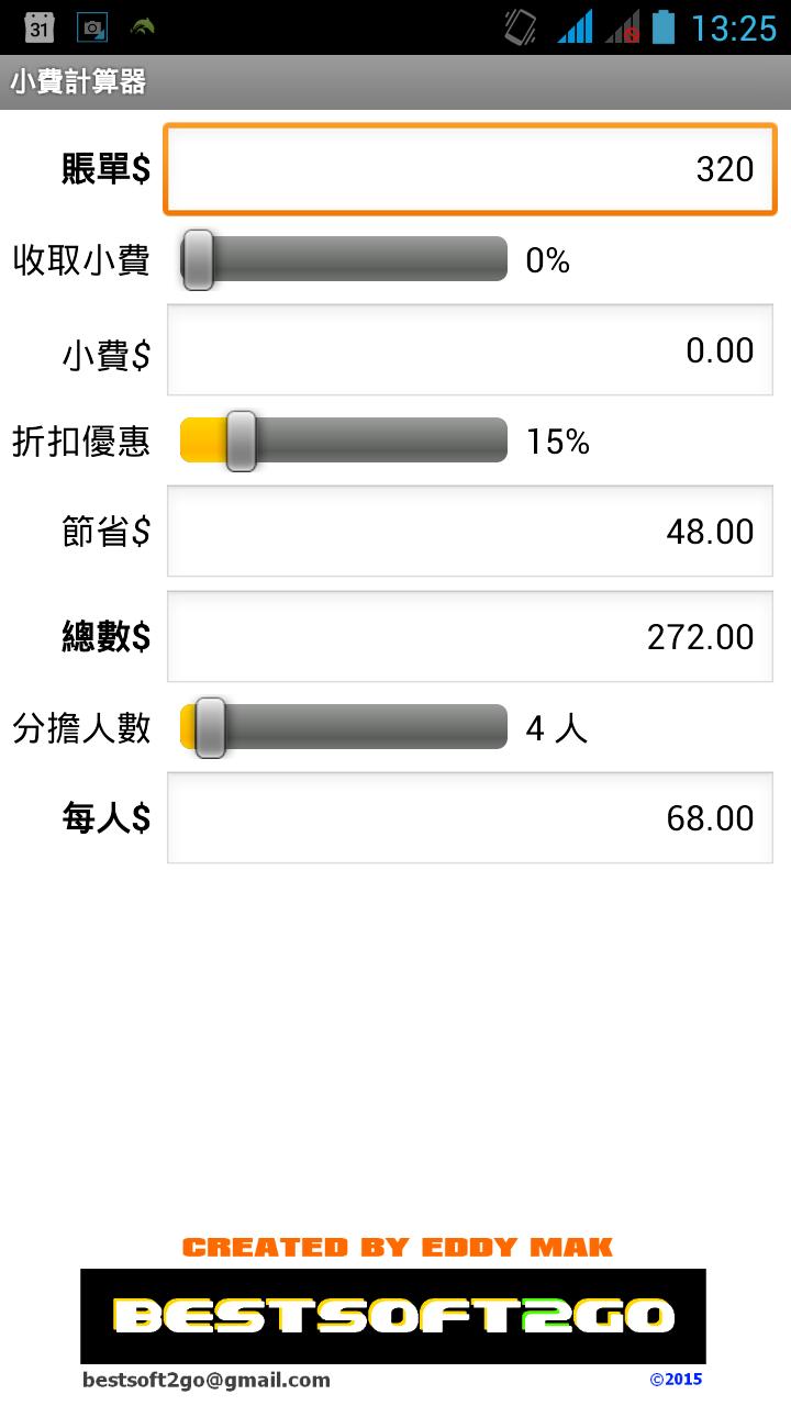 আপনি টিপ ক্যালকুলেটর উপর পরিমাণ প্রবেশ করার পর, আপনি সহজেই ডগা পরিমাণ, সংরক্ষিত এবং মোট পরিমাণ দেখতে পারেন, শেয়ার করুন টিপ শতাংশ ছাড় শতাংশ এবং মানুষের সংখ্যা সমন্বয় সেইসাথে প্রতিটি ব্যক্তির কত দিতে হবে !