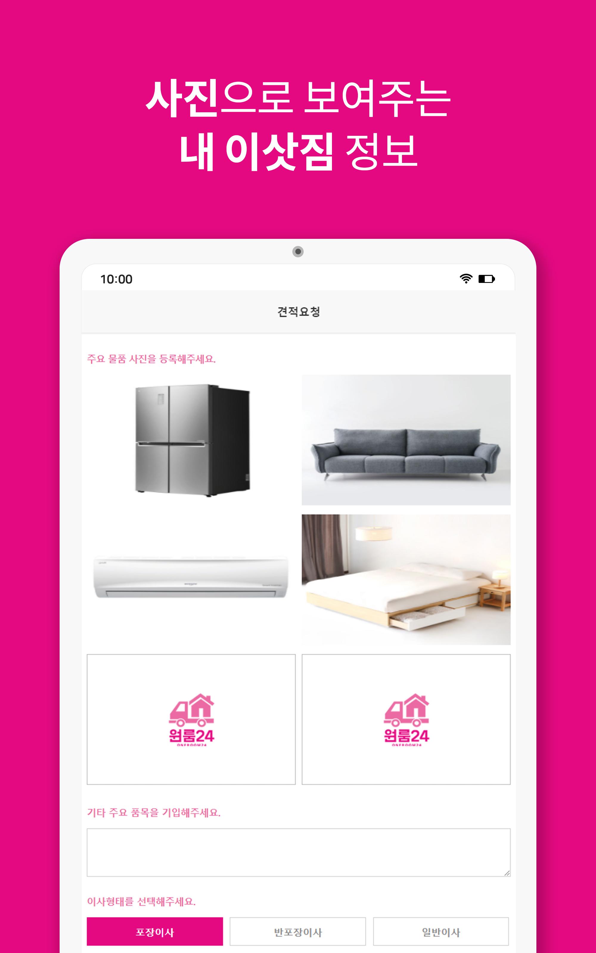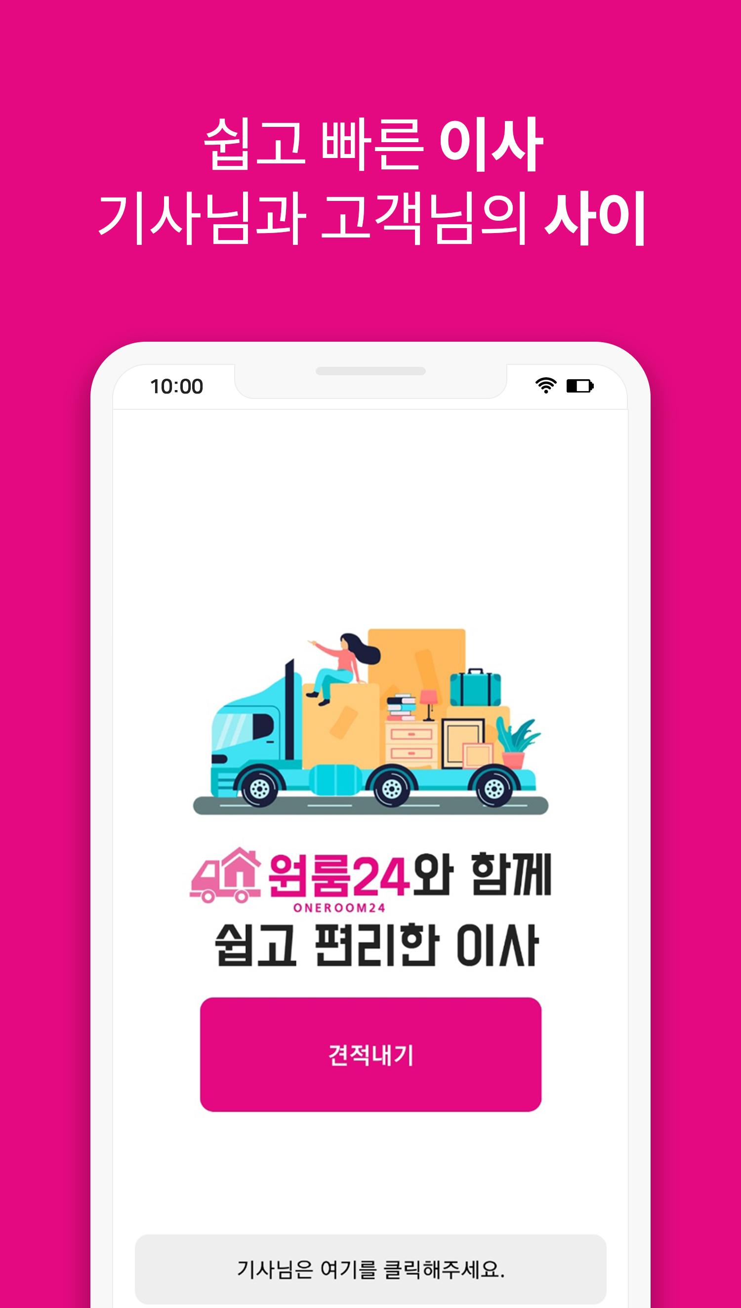 원룸24는 고객과 용달기사간의 간편 거래를 지원해주는 이사앱으로써