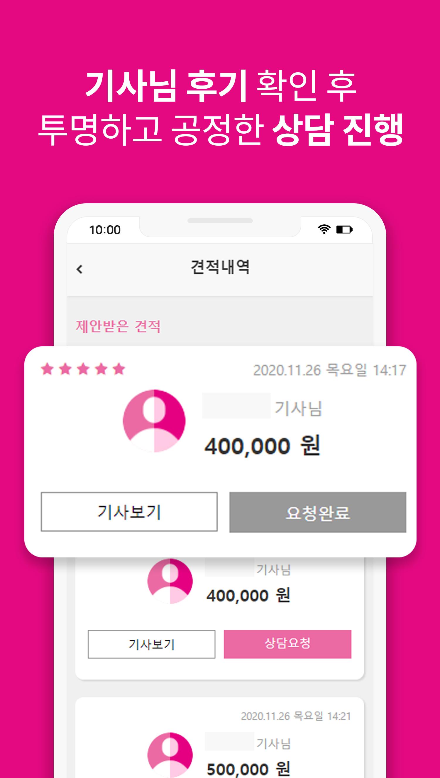 탄탄한 노하우가 깃든 기사님들의 제안을 받아보실 수 있어요.