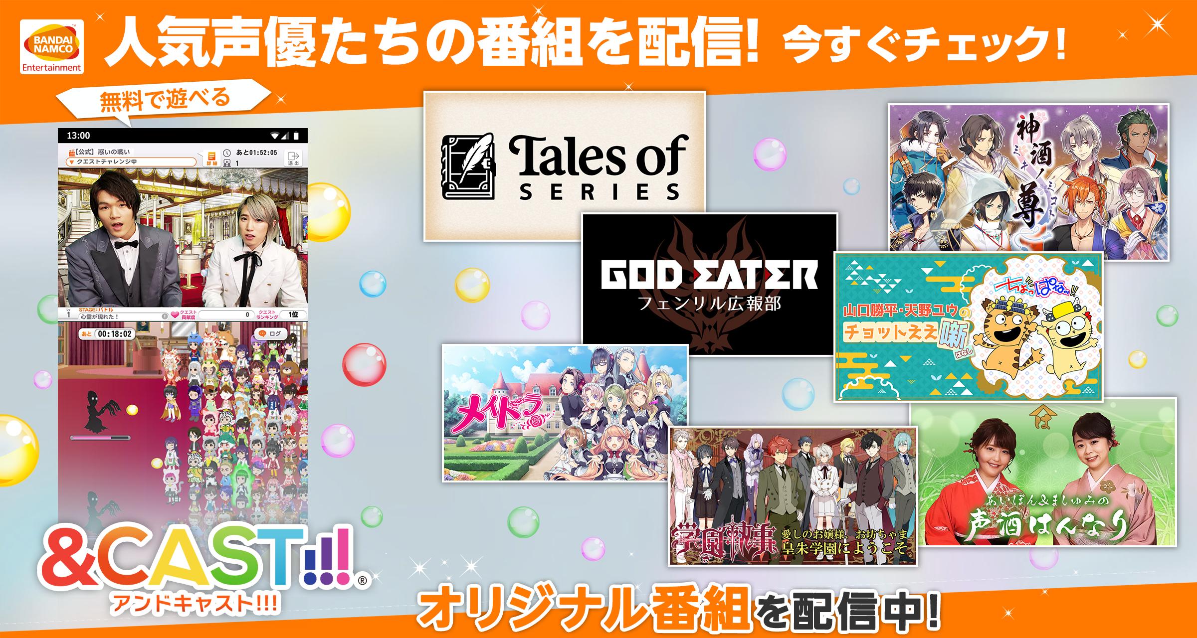バンダイナムコエンターテインメントによる、アニメ・声優好きのための動画アプリ「&CAST!!!(アンドキャスト)」