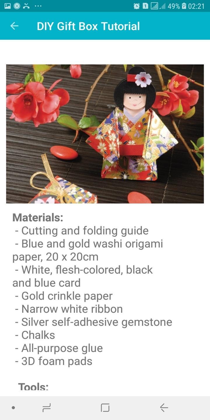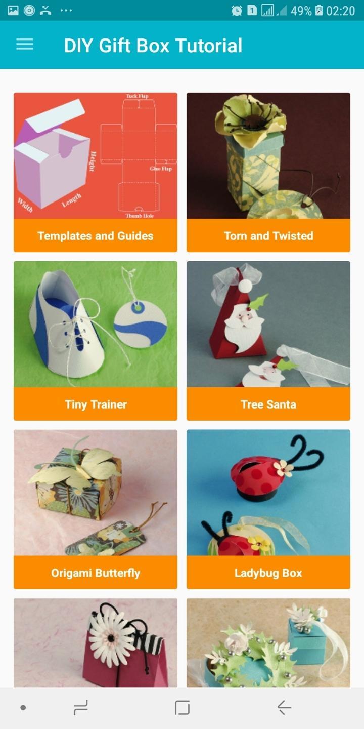 This app is especially designed to give you ideas of creating such DIY gift boxes on your own. It entails several tutorials along with step by step procedures on how to create such personalized boxes to your liking. By viewing them, a stimulation of different ideas will urge you to make your box unique to your own style and personality as well as appropriate to the gift.