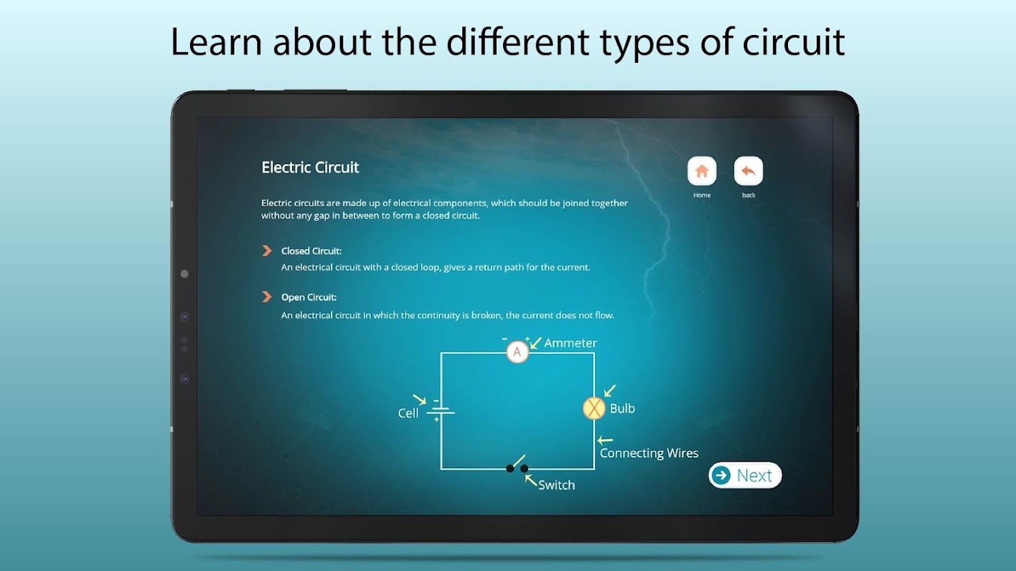 অ্যাপটি অত্যন্ত সরলীকৃত এবং আকর্ষণীয় শিক্ষণ পদ্ধতি ব্যবহার করে ইনসুলেটর এবং কন্ডাক্টর, বৈদ্যুতিক প্রবাহ এবং বৈদ্যুতিক প্রবাহ এবং বৈদ্যুতিক প্রতিরোধের প্রক্রিয়া চিত্রিত করে। এছাড়াও, বৈদ্যুতিক পরিমাণ পদার্থবিদ্যা অ্যাপটি বৈদ্যুতিক ভোল্টেজ এবং বৈদ্যুতিক প্রতিরোধের গণনা করতে সহায়তা করে। শিক্ষার্থীদের জন্য ধারণাগুলিকে সহজ এবং আকর্ষণীয় করে তোলার লক্ষ্যে অ্যাপটি অ্যানিমেশন, ভার্চুয়াল পরীক্ষা এবং ক্রিয়াকলাপ দিয়ে ডিজাইন করা হয়েছে। এই ধরনের ভার্চুয়াল পরীক্ষা-নিরীক্ষা এবং ক্রিয়াকলাপগুলি নিশ্চিত করবে যে শিক্ষার্থীরা বিষয়টি সম্পর্কে আরও কৌতূহলী হয়ে উঠবে এবং ধারণাটি সম্পূর্ণরূপে বুঝতে পারবে।